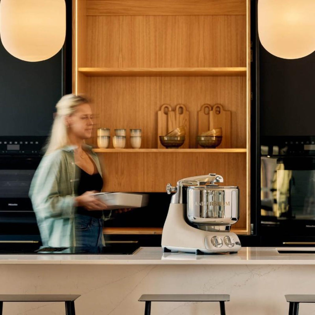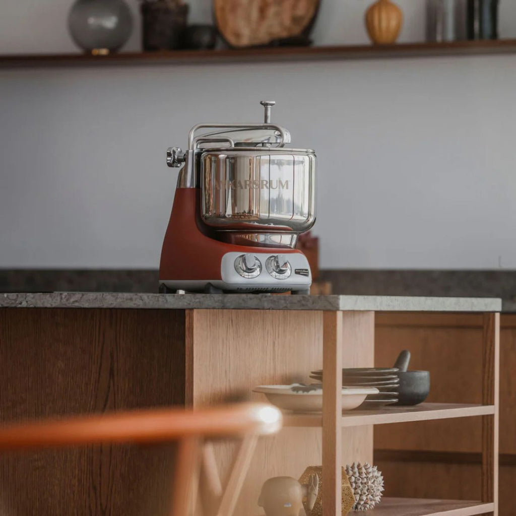 Con un aspecto elegante y compacto, la Ankarsrum es todo un clásico en las cocinas suecas desde 1940 y ha sido diseñada para durar y resistir, además de ser una máquina muy versátil.