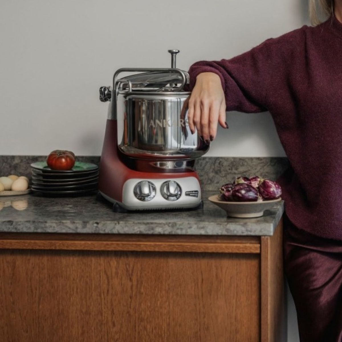 Ankarsrum es ampliamente conocido entre los entusiastas de la panadería en países nórdicos, y está ganando gran fuerza mundialmente. Este robot amasador de gran capacidad toma inspiración del diseño superior de las amasadoras "en espiral" utilizadas en la producción de pan artesanal. Su potente motor de 600 W, ubicado en la base, hace girar el bol de acero inoxidable de 7 litros contra un brazo amasador fijo de acero inoxidable. Como resultado, la Ankarsrum puede manejar cargas más pesadas, masas más fuertes y mayores cantidades con menor esfuerzo.
