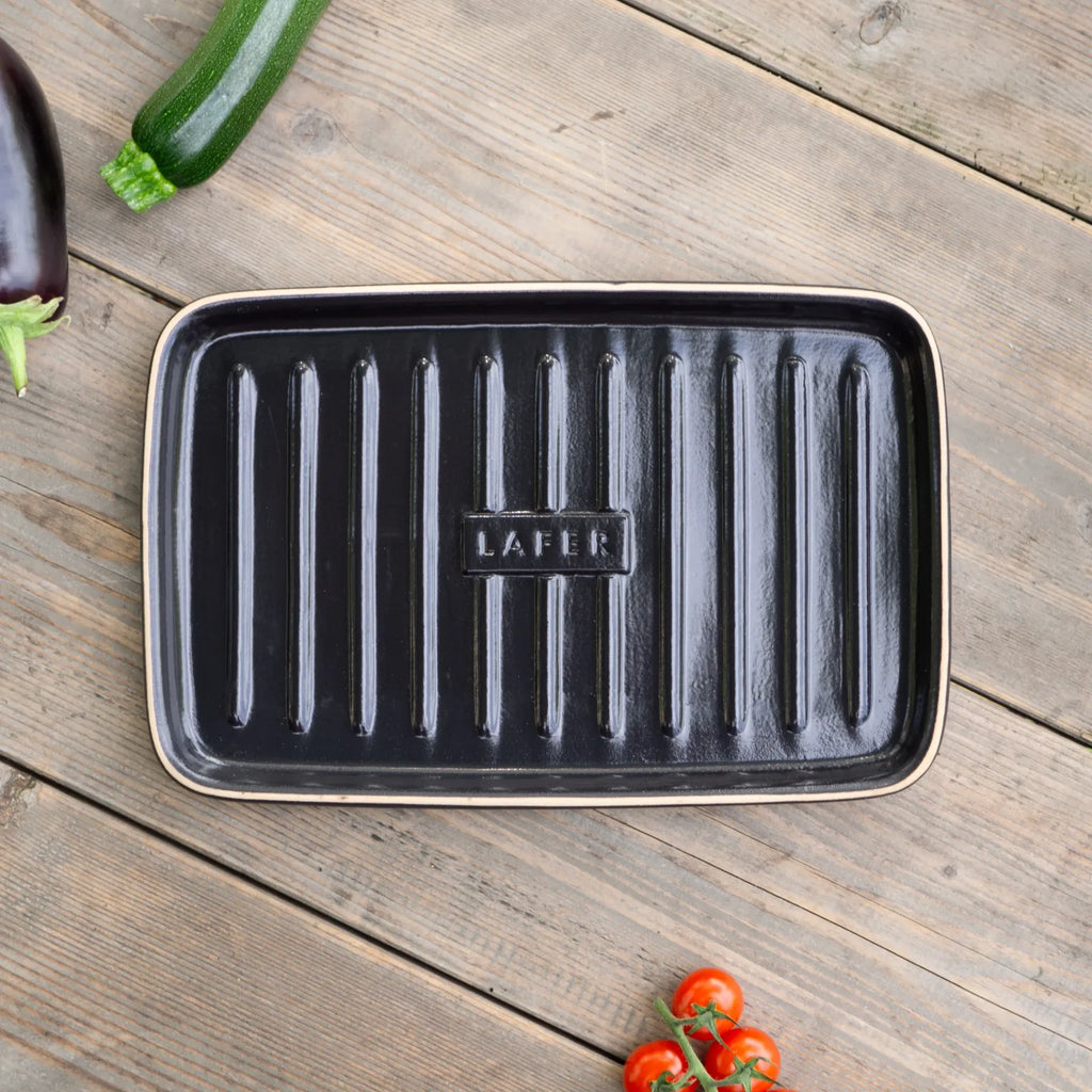 La excelente transmisión del calor de la arcilla refractaria hacen de esta plancha estriada una pieza con la que disfrutar cocinando en tu barbacoa al aire libre, con unos resultados de cocción y de sabor maravillosos. Pero puedes quedarte en casa, para cocinar en el horno con ella, porque es igualmente fantástica.