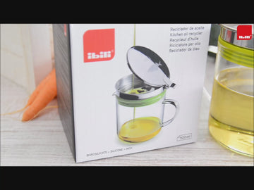 El Recuperador de aceite de cristal Ibili resulta de lo más práctico. Con él, podrás limpiar y recuperar el aceite que hayas utilizado para cocinar, siempre que no esté quemado, y volver a usarlo en tus próximas frituras. Su cuerpo está fabricado en borosilicato, un vidrio transparente de gran resistencia térmica, con tapa de silicona y una malla superfina de acero inoxidable que permite filtrar el aceite y eliminar todas las impurezas de forma eficaz.
