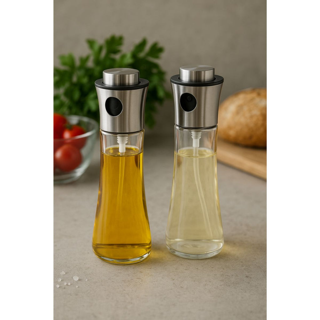 Los dos pulverizadores están fabricados en vidrio de alta calidad y cuentan con tapón dosificador de acero inoxidable con cierre de rosca. Son higiénicos, duraderos y resistentes, y su diseño moderno es perfecto para cualquier mesa y cocina. Se limpian muy fácilmente y no absorben olores ni sabores. Úsalos para el aceite de oliva, el de girasol, los que aromatizas en casa, y también para tus vinagres más habituales.