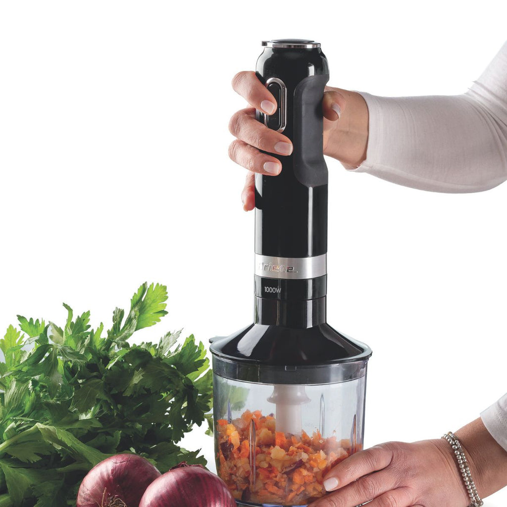 Está disponible en tres colores diferentes: rojo, negro y blanco, para que puedas elegir cuál de ellos combina mejor con las tonalidades de tu cocina. El pack incluye el accesorio batidor, el triturador, un vaso mezclador de 700ml de capacidad y una picadora de 500ml. ¿Más fácil imposible, no?