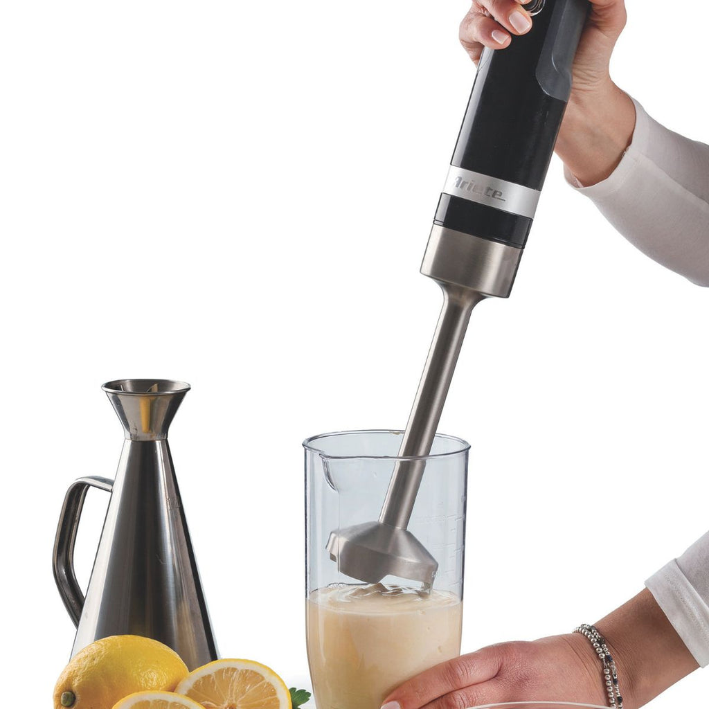 Si quieres optimizar espacio en tu cocina, esta batidora de varillas 3 en 1 Moderna Ariete es una estupenda elección. Ten a mano todo lo que necesitas de forma cómoda sin ocupar más espacio del necesario. Que hay que triturar la comida para un bebé, utilízala. Que quieres preparar la masa para un bizcocho, utilízala. Que necesitas triturar almendras para una picada, también puedes hacerlo con ella.