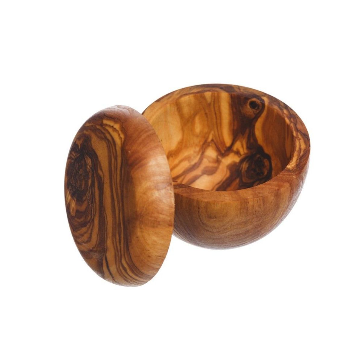 Perfecto como salero, como bote para especias o como azucarero, este precioso recipiente con tapa de madera de olivo Selbrae se convertirá en tu bote favorito en la cocina y en la mesa. Además de práctico, tan solo tienes que fijarte en lo bonito que es para querer tenerlo siempre a la vista. Libre de tóxicos, seguro y saludable, ¡podrás usarlo para todo! Tallado a mano en madera de olivo 100% natural, su fabricación artesanal y la original veta de la madera, hacen que cada cuenco con tapa sea único.