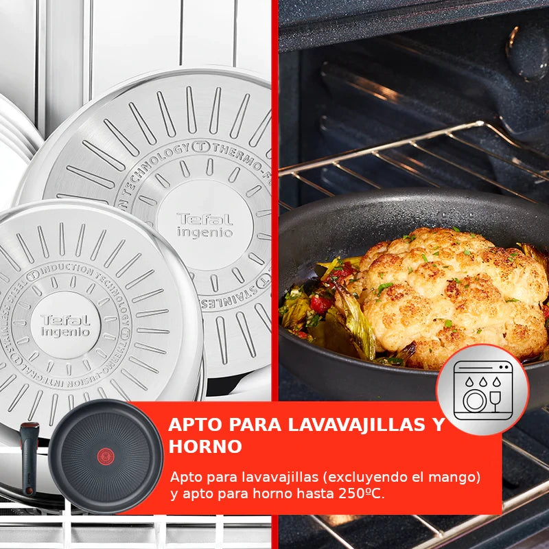 ¿Estás buscando cómo simplificar tu forma de cocinar en casa? Ingenio Cook Eat es la mejor gama para conseguir unos resultados sabrosos y una cocción uniforme. Fabricada en acero inoxidable de primera calidad en el exterior y con un revestimiento antiadherente de titanio seguro para la salud en el interior, esta gama garantiza una resistencia y una durabilidad extraordinarias.