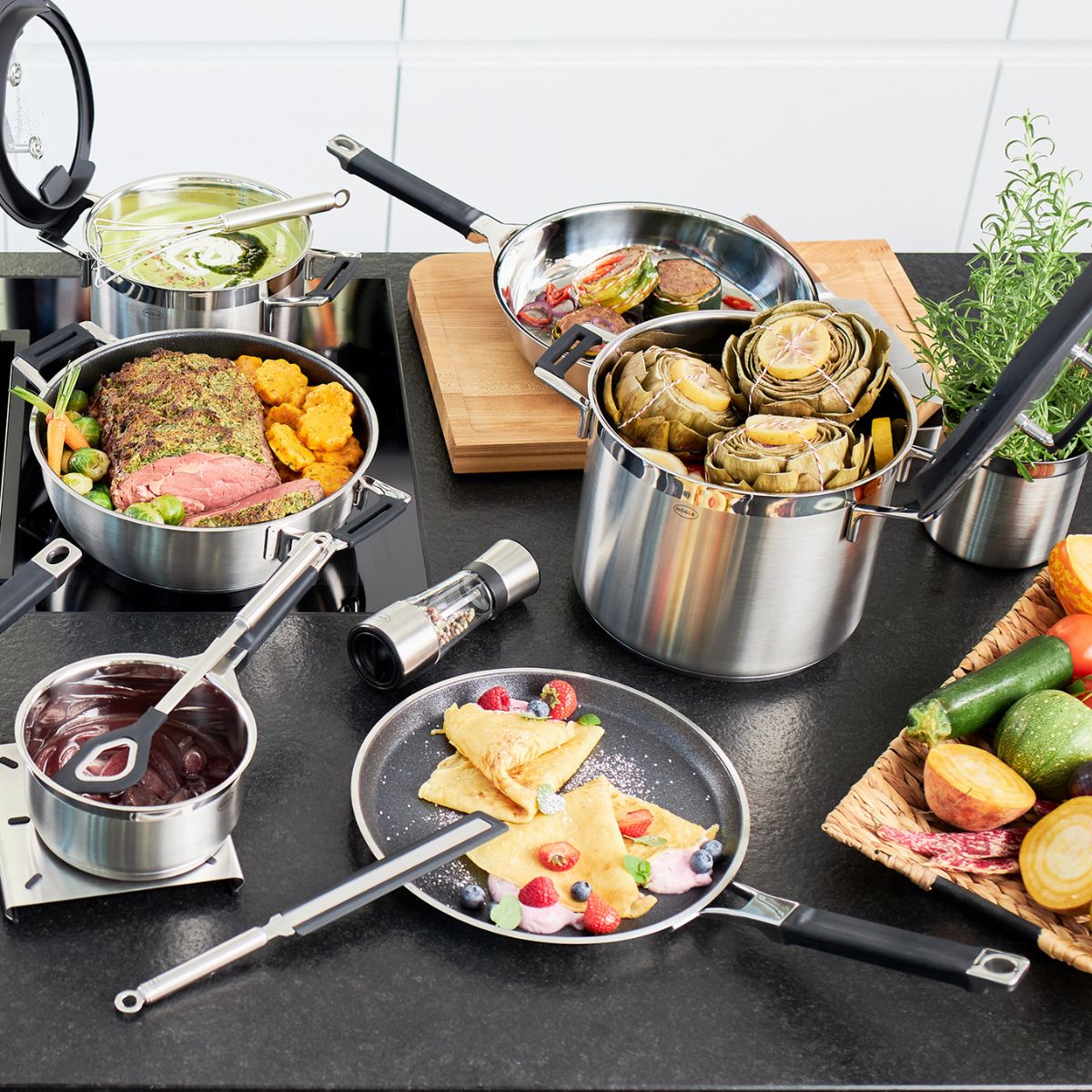 Con esta olla alta de 8,7 litros vas a cocinar de maravilla y en grandes cantidades. Además de ser muy elegante y robusta, su fabricación en acero inoxidable 18/10 de excelente calidad garantiza su durabilidad. Es una olla con la que podrás cocinar de forma eficiente, ya que su base difusora de inox con núcleo de aluminio encapsulado se calienta rápidamente y retiene el calor, repartiéndolo de manera uniforme. Cocinarás mejor, más rápido, más limpio y con más eficiencia.
