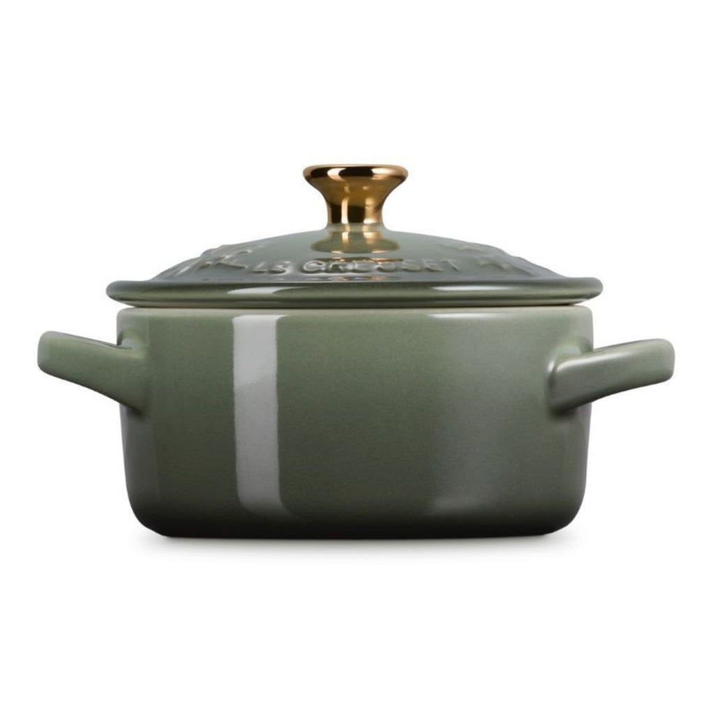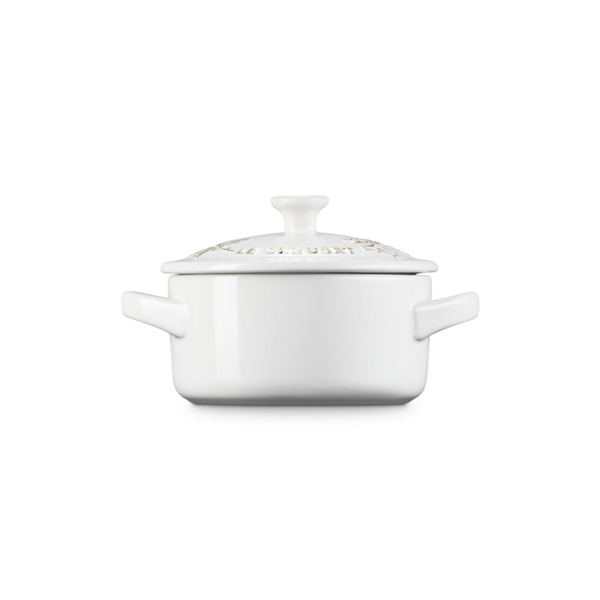 La mini cocotte Holly destaca por el diseño de su tapa, con bonitos relieves y el pomo dorado, y como todas las piezas de cerámica de Le Creuset:
