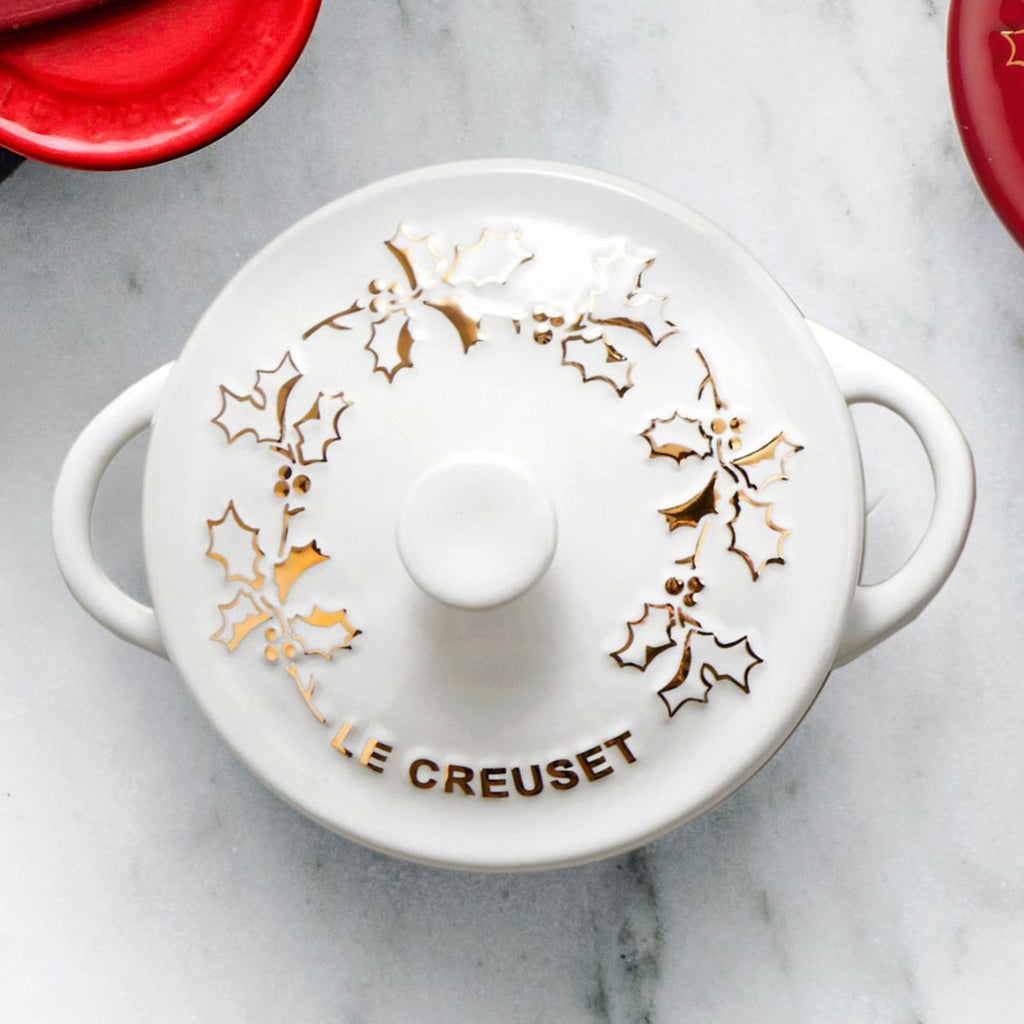 Si te encanta que la Navidad llene todos los rincones de tu casa, en tu mesa no puede faltar la Mini cocotte cerámica Ed. Limitada Holly Le Creuset. Esta preciosa cazuelita de cerámica de gres desprende espíritu navideño desde el relieve de su tapa hasta su brillante pomo dorado. Con la funcionalidad de la mini cocotte tradicional, es una opción perfecta para presentar tus aperitivos y entrantes más exquisitos o tus postres más elaborados y festivos, tanto en Navidad, como en cualquier ocasión.