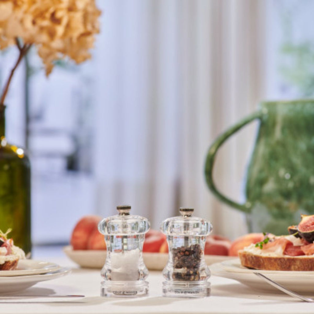 Con los Molinillos acrílicos Capstan Cole&Mason aderezarás tus platos de forma fácil, precisa y con mucho estilo. Este pequeño y transparente accesorio muele los granos de sal y pimienta con el grosor que prefieras, liberando todo su aroma y sabor en cada giro.