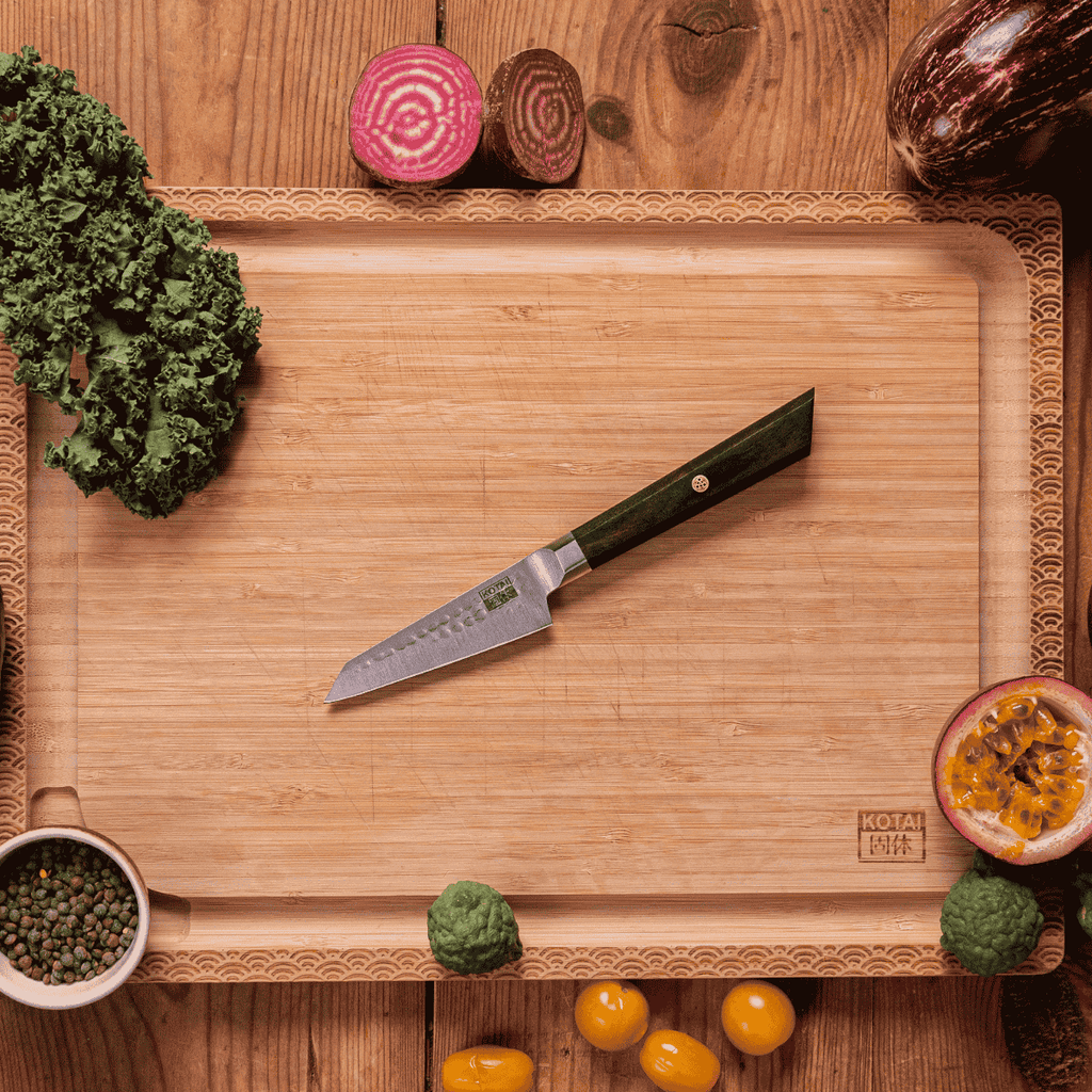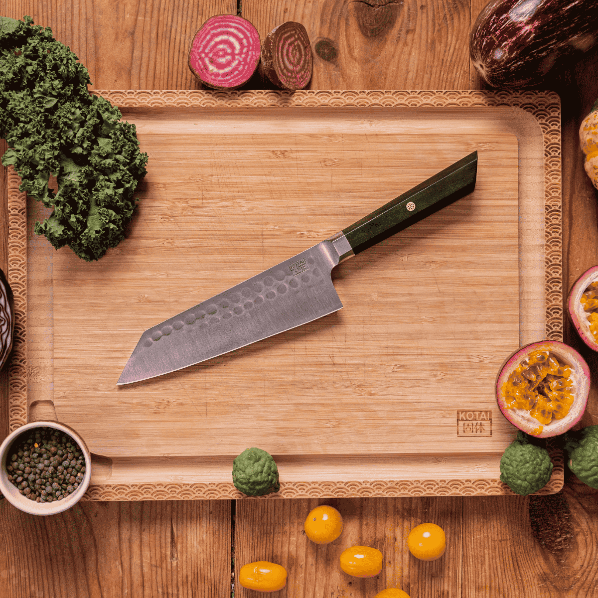 Ligeros, precisos y afilados como los cuchillos japoneses, y tan duraderos, inoxidables y de fácil mantenimiento como los cuchillos alemanes, los cuchillos KOTAI son el equilibrio perfecto entre los cuchillos japoneses y los alemanes, reuniendo las mejores virtudes de ambos mundos.