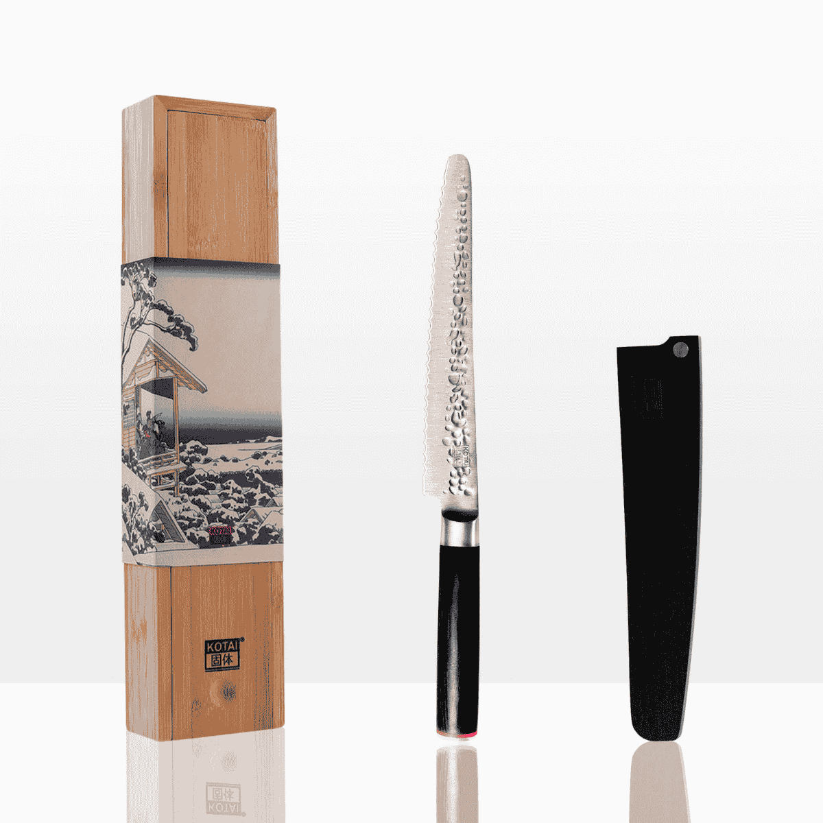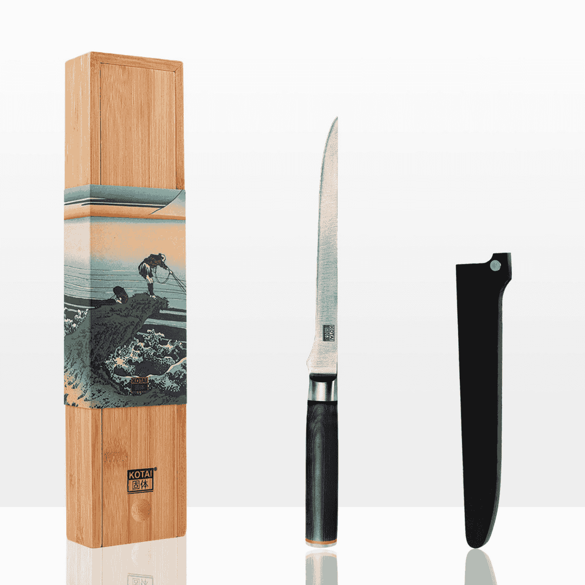 Todos los cuchillos Pakka Kotai tienen una presentación prémium, perfecta para cuidarlos como se merecen y que los convierte en un regalo ideal. Cada cuchillo se presenta en una elegante caja de madera de bambú e incluye una funda protectora de bambú para la hoja.