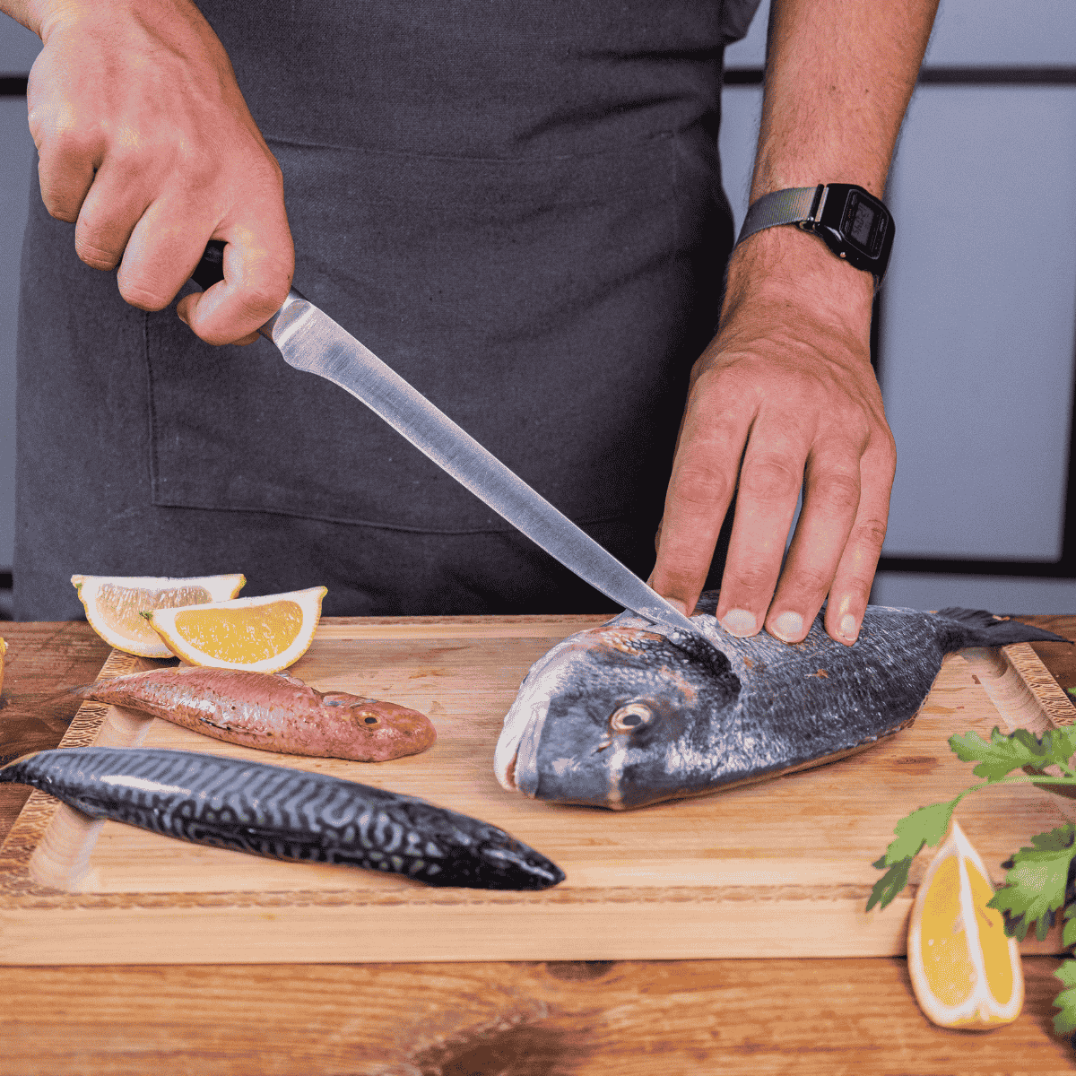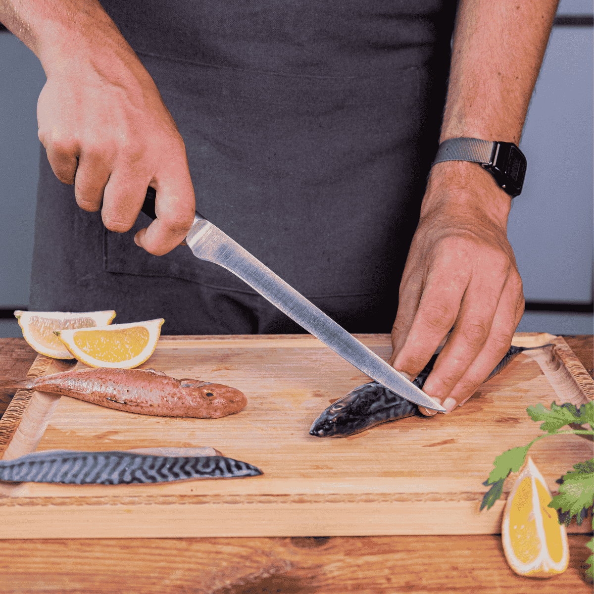 • Fileteador. Estrecho y perfecto para filetear y deshuesar. El cuchillo fileteador presenta una hoja estrecha y flexible, ideal para filetear con precisión la carne o el pescado fresco.