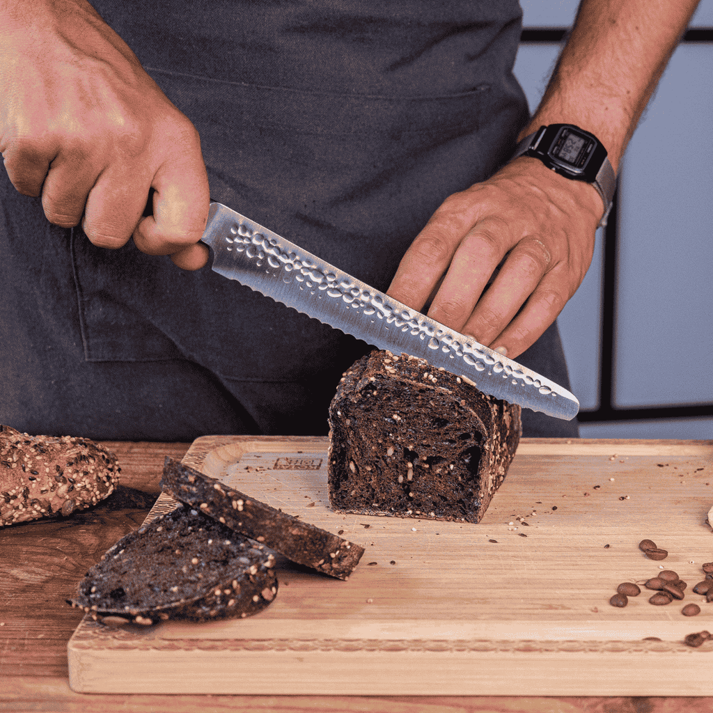 • Pan. Su hoja de sierra es ideal para cortar sin triturar ni romper. El cuchillo de pan dentado es el más adecuado para cortar de forma suave, afilada y sin aplastar, incluso los alimentos más delicados, conservando todo su sabor.