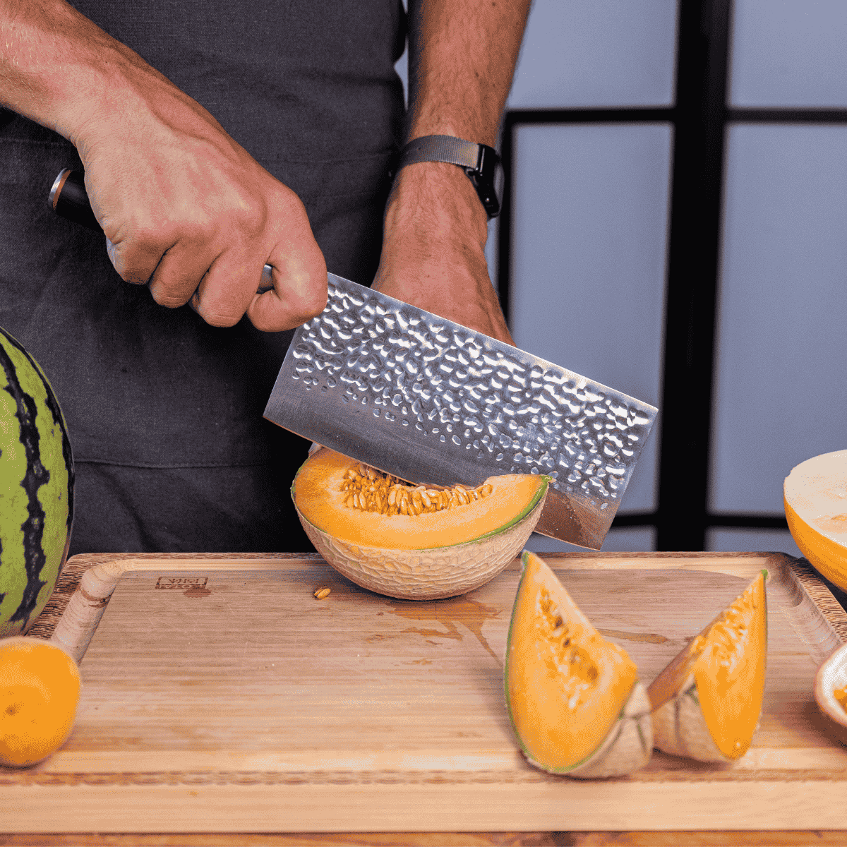 • Carnicero. Perfecto para picar, cortar y triturar. A menudo llamado cuchillo de carnicero chino, su hoja ancha es ideal para cortar grandes porciones de carne, preparar costillas o picar rápidamente verduras duras sin cansar la muñeca.