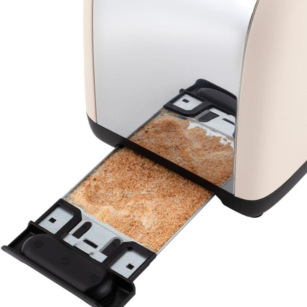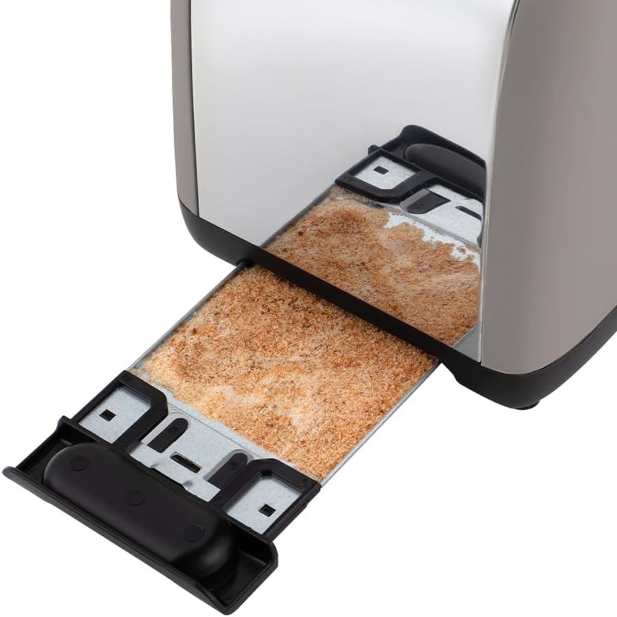 Además, mantener tu cocina limpia es sencillo con la bandeja recogemigas extraíble y el recogecable integrado, mientras que los pies antideslizantes aseguran la estabilidad del tostador y te aportarán seguridad al uso. Por último, sus medidas compactas y reducidas te aportarán un fácil almacenamiento ¡cabrá en cualquier lugar de tu cocina ocupando el mínimo espacio!