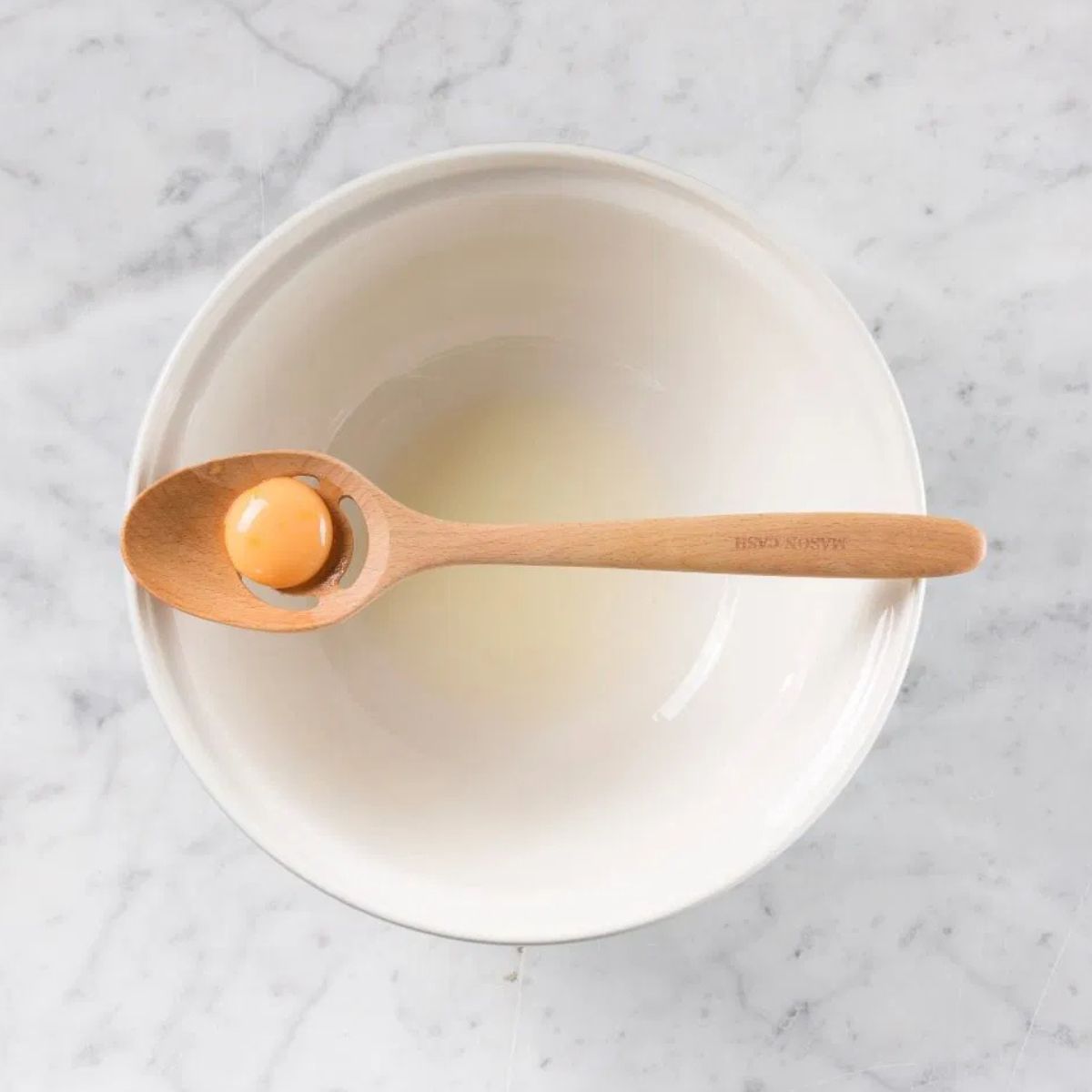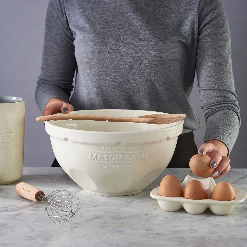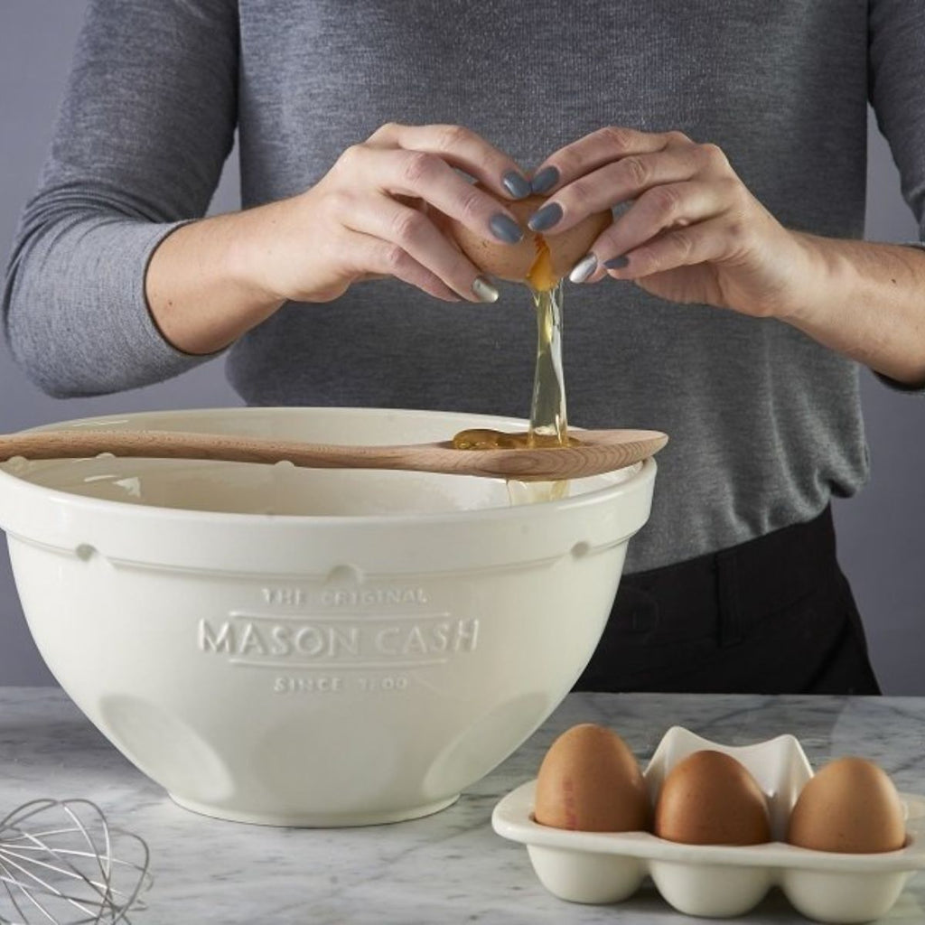Fabricada en madera de gran calidad, se recomienda lavar a mano esta cuchara separadora de huevos Mason Cash. La parte posterior del mango cuenta con una serie de ranuras que tienen como objetivo encajar en los tazones o cuencos de pudin de Mason Cash, para que puedas encajarla allí mientras separas las yemas de los huevos.