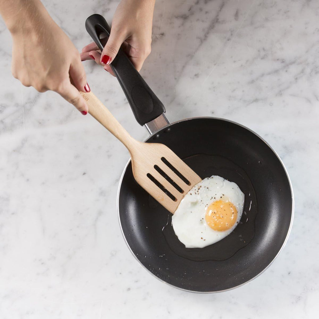 Esta espátula rasera con agarrador Mason Cash es la caña porque puede utilizarse para muchas cosas en la cocina. Aquello de voltear carnes o verduras y tener que hacer filigranas para que el aceite se escurra, puedes dejarlo atrás con esta espátula. También puedes olvidarte de quemarte los dedos extrayendo las rejillas del horno, ya que cuenta con un mango especialmente diseñado para ello. ¿Verdad que es una pasada?