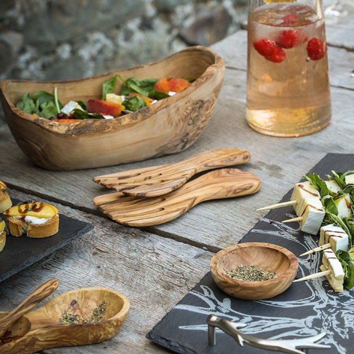 La madera de olivo 100% natural es segura y saludable. Su tacto es muy suave y es resistente a las manchas y a los olores, libre de tóxicos, naturalmente antibacteriana y muy duradera. Preciosos en la mesa y perfectos en la cocina, son ecológicos, biodegradables y sostenibles. Hechos a mano con maestría en Túnez, se convertirán en tu mejor ayudante para repartir la comida.