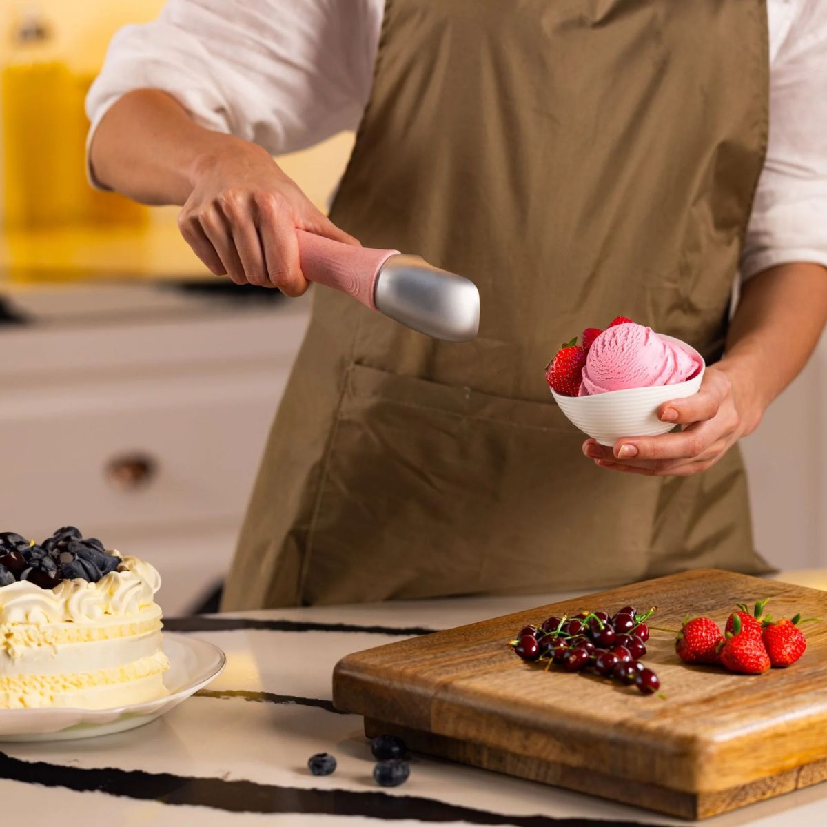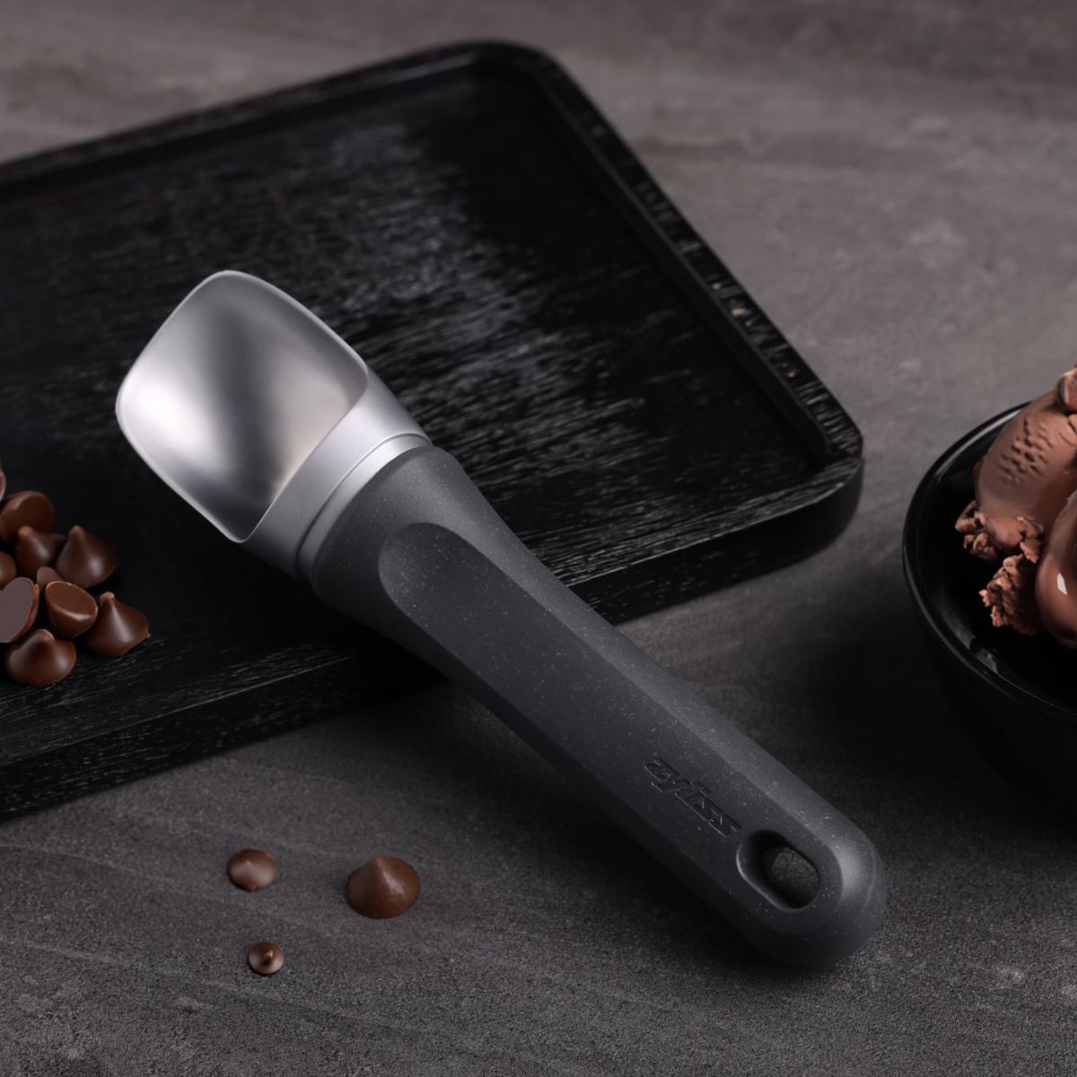 La cuchara para helado Zyliss está diseñada para que servir helado sea tan fácil como disfrutarlo. Su borde afilado permite cortar y porcionar incluso los helados más duros sin esfuerzo, consiguiendo bolas bonitas y regulares en segundos. Y gracias a su mango ergonómico, aislado del frío, podrás servir varias raciones sin que las manos sufran ni un poquito.