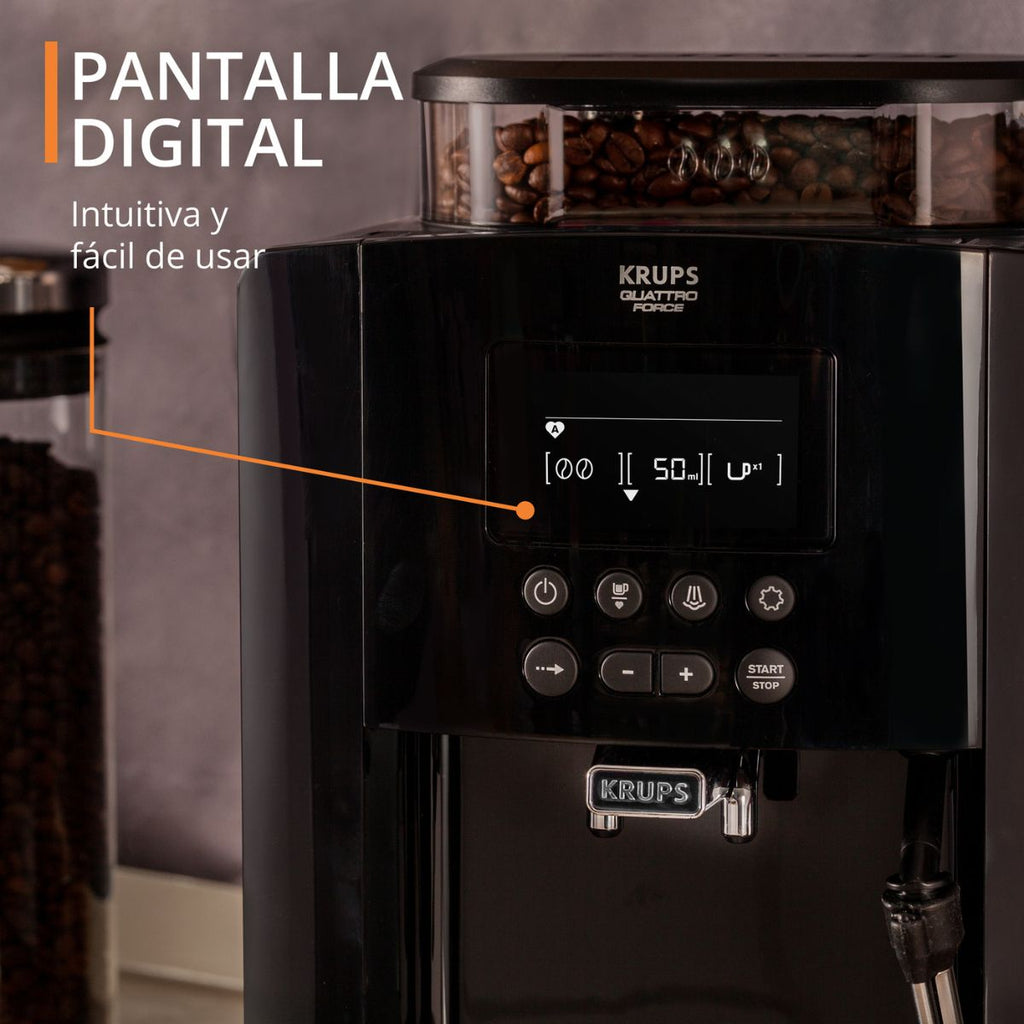 Combina la tecnología más avanzada, con un diseño elegante y compacto, de menor tamaño, y un manejo muy intuitivo. Dotada del sistema Quattro Force, que optimiza cada fase del proceso de preparación del espresso, garantiza unos resultados excelentes, llenos de aroma y sabor. Su pantalla LCD mejorada es muy intuitiva, para que puedas ajustar la temperatura y la molienda a tu gusto, y memorizar tus ajustes favoritos. Así, siempre podrás saborear el café perfecto, como a ti te gusta.