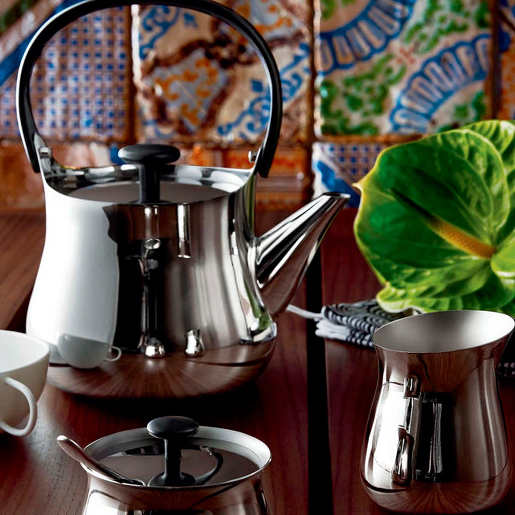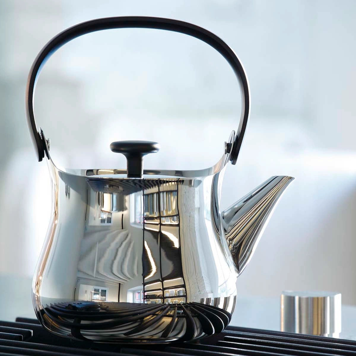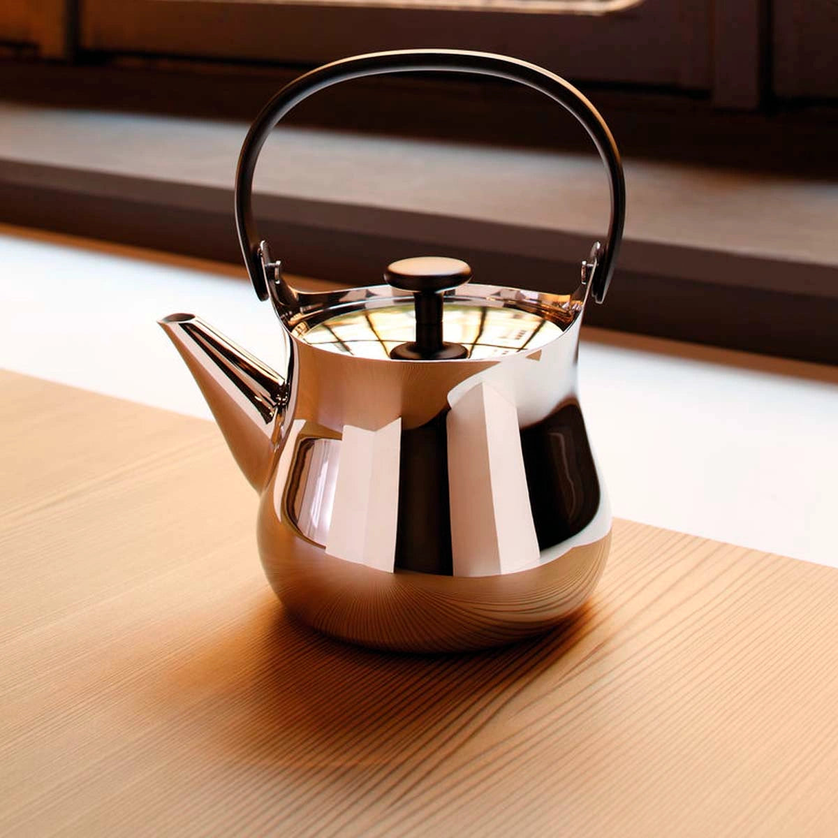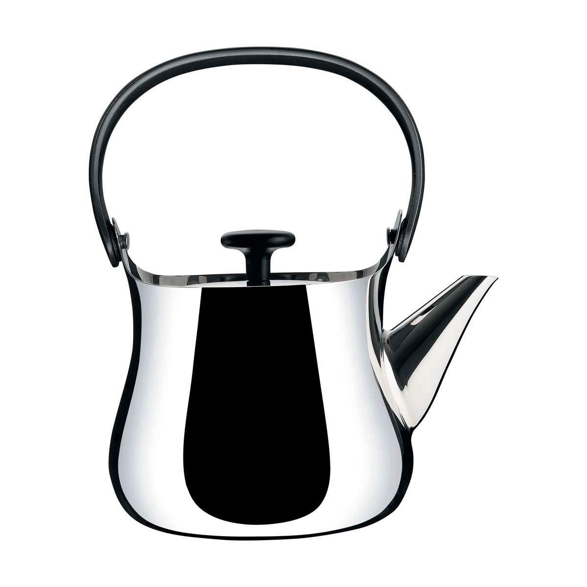 Si hasta ahora te has resignado a tener un hervidor en casa por falta de espacio porque tu cocina es pequeña y ya no cabe nada más en ella, te encantará saber que este hervidor de acero inoxidable Cha Alessi es justo lo que necesitas. Además de ser un hervidor extremadamente práctico y funcional, cuenta con un mango abatible que permite guardarlo ocupando el mínimo espacio.