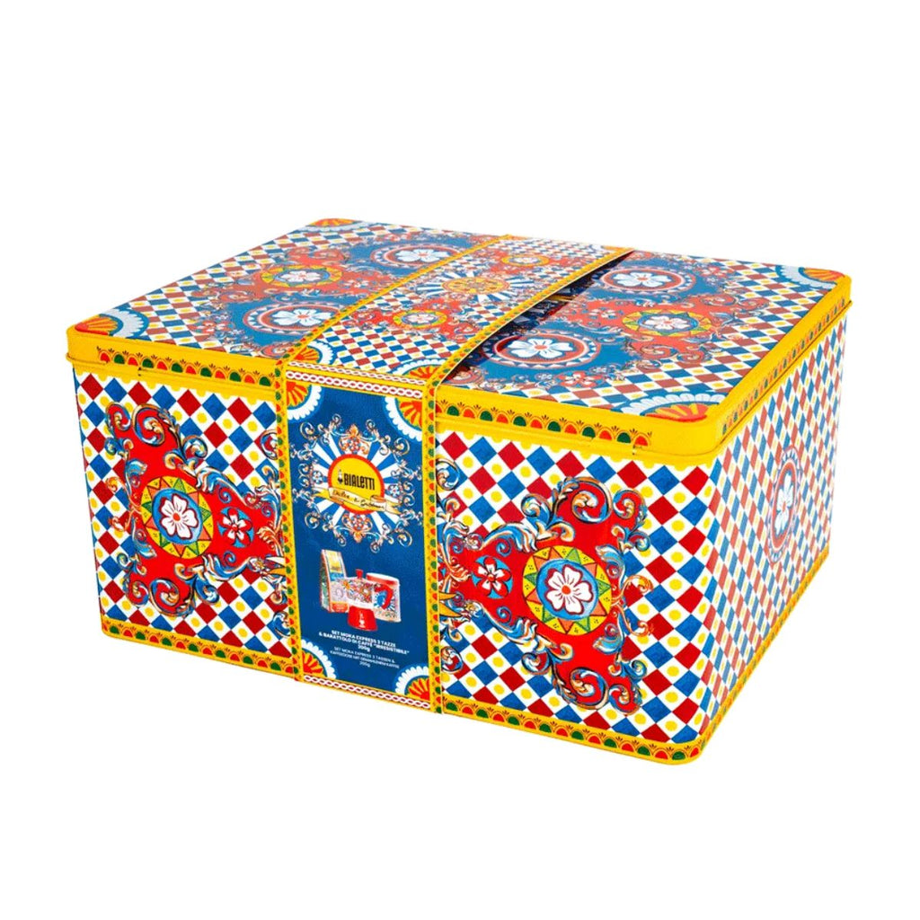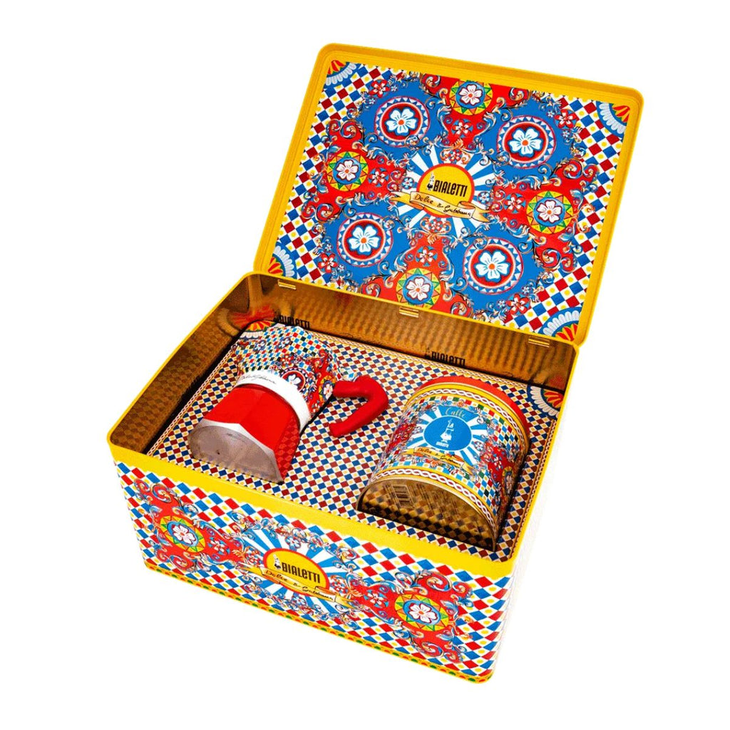 Puedes elegir el set con diseño Siciliano y 2 tazas con un diseño a juego con la cafetera, el set con diseño Siciliano y una cafetera de 3 tazas de capacidad y un paquete de café o el set con diseño Blu Mediterraneo con cafetera de 3 tazas de capacidad y un paquete de café. ¡Qué difícil elección!