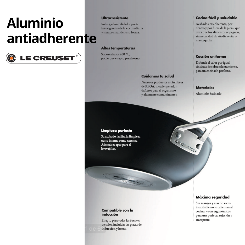 Una pieza que te dará mucho juego en la cocina, por su gran versatilidad, resistencia y durabilidad, y en la que no se te pegará nada, gracias a su excelente revestimiento antiadherente, el mejor de Le Creuset.