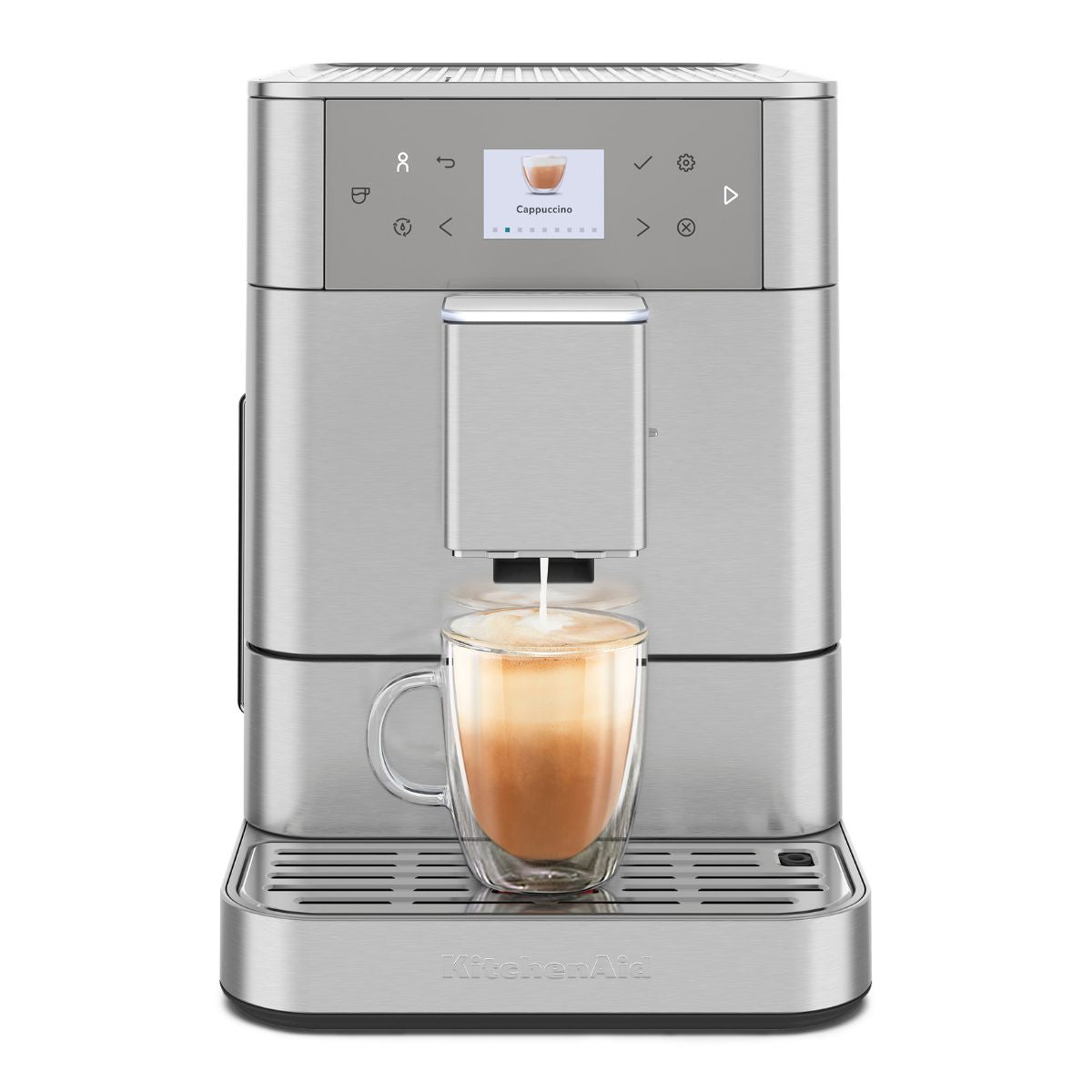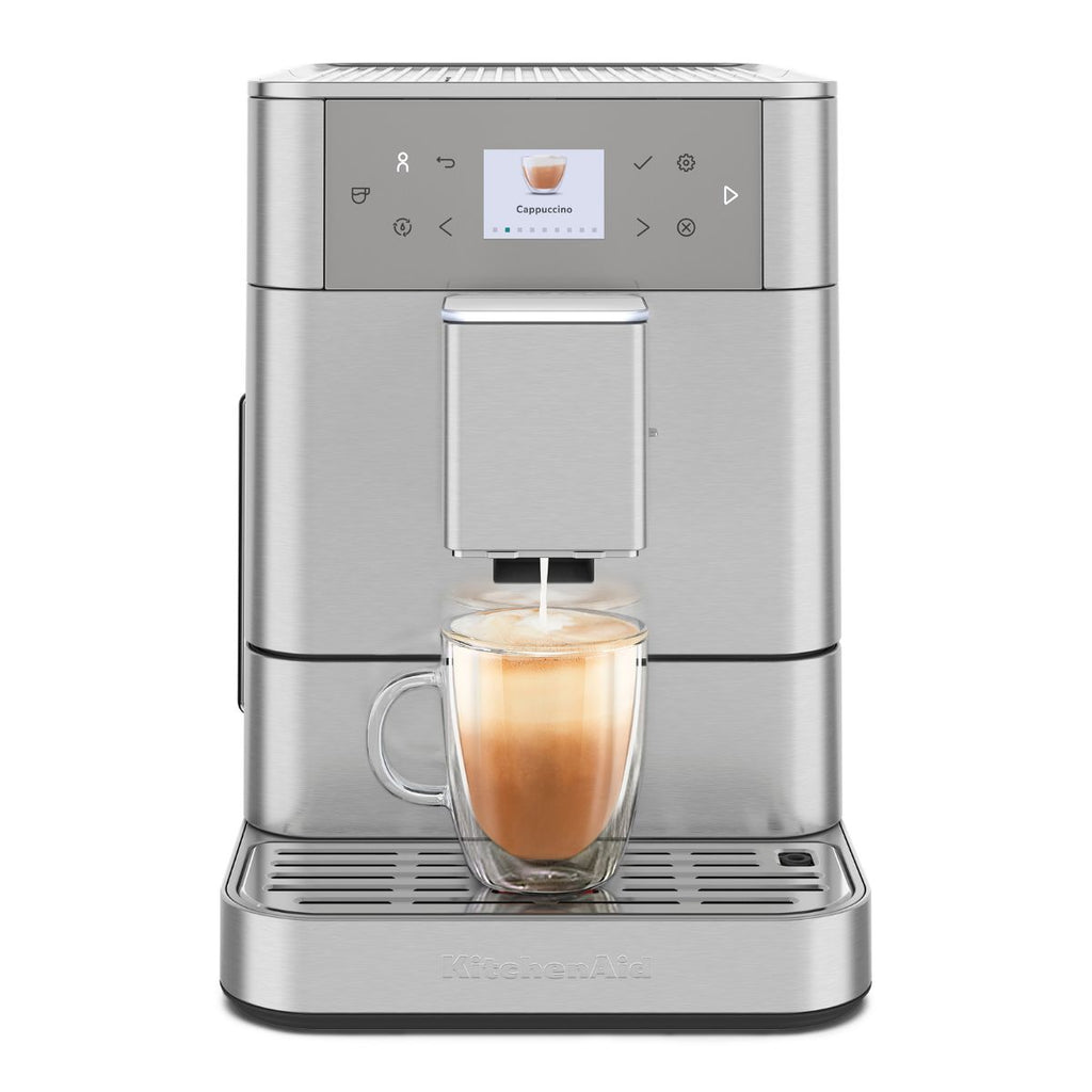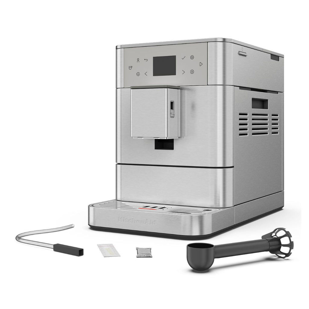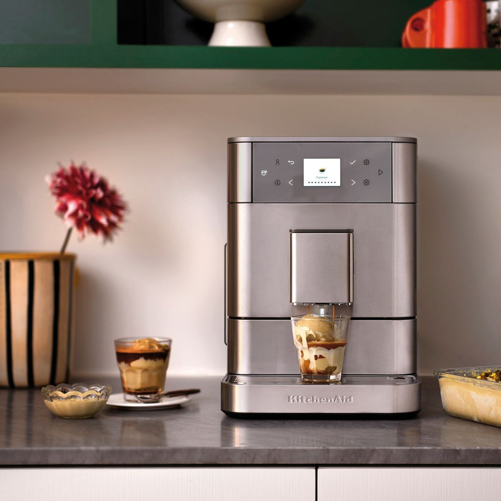 Elegante y muy funcional, con la calidad y durabilidad que caracteriza a KitchenAid, y la posibilidad de personalizar y disfrutar de tantos cafés como quieras con solo apretar un botón, esta cafetera superautomática se hará un hueco en tu cocina, para que no haya ni un solo momento en que no puedas saborear un café tan aromático como el de tu cafetería favorita.