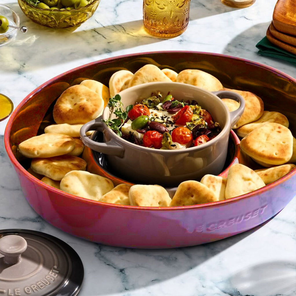 ¡Es hora de lucir de aperitivos y mesa en buena compañía! Si quieres que tu mesa sea el centro de atención de todos tus invitados, con el Plato cerámico para aperitivos de Le Creuset acertarás seguro. Esta pieza de cerámica de gres esmaltada es perfecta para servir tus aperitivos de una forma cómoda y elegante, permitiéndote disfrutar de exquisitos tentempiés y bocados con un toque de estilo en cualquier ocasión.