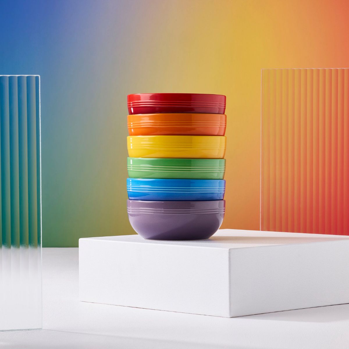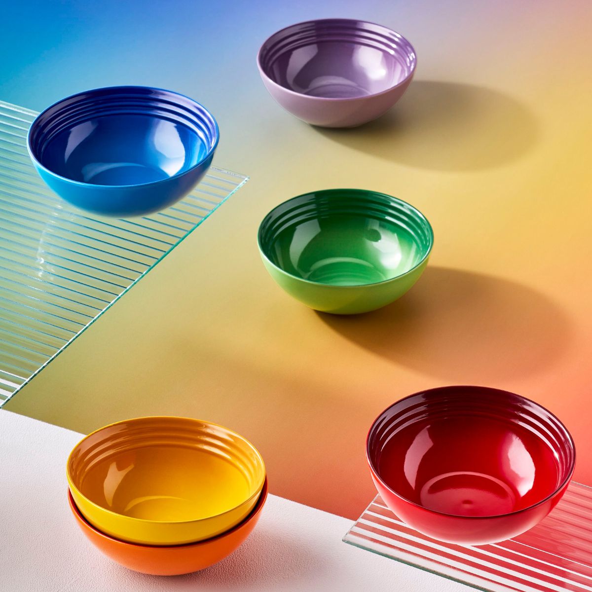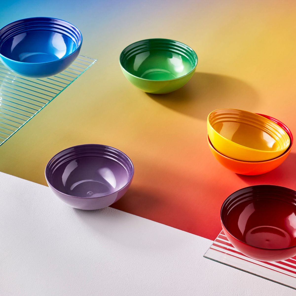 El Set de 6 boles cerámicos Arcoíris Le Creuset es un conjunto de 6 coloridos cuencos que llenarán de alegría tu cocina y tu mesa. Su generosa capacidad los hace muy versátiles. Tanto como platos hondos, ensaladeras, para aperitivos, postres, o los cereales del desayuno, los usarás para todo. Preciosos cada uno en su color, lucen de maravilla los 6 juntos. Así que, ¿por qué elegir si los puedes tener todos?