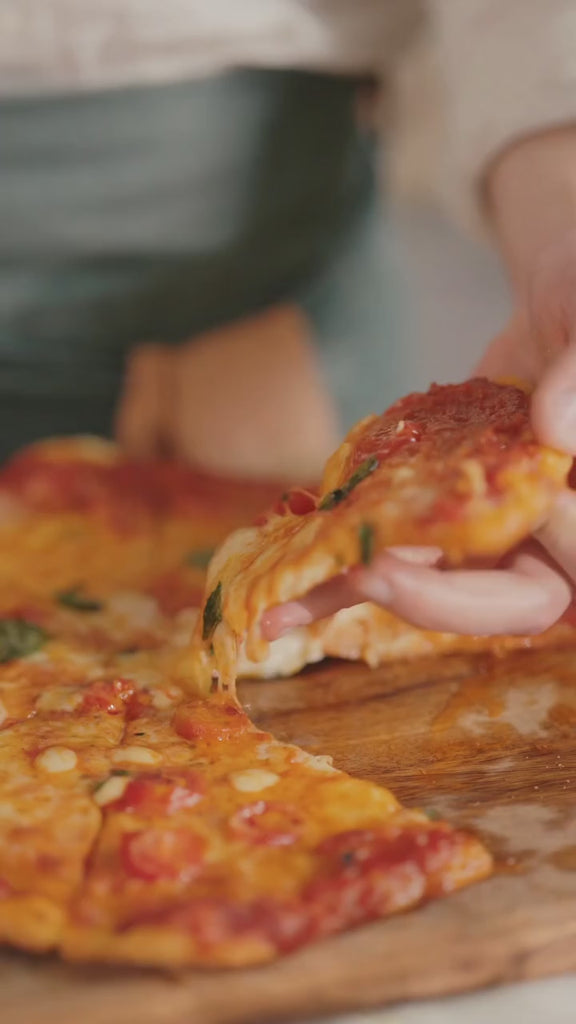 Con unas dimensiones de 48 cm x 33 cm te permitirá colocar pizzas de cualquier tamaño, ¡incluso las familiares! Y con lo bonita que es, quedará de lujo en la mesa como una preciosa tabla para presentar quesos, embutidos, aperitivos variados o una bandeja de tus mejores galletas, pastelitos o magdalenas.