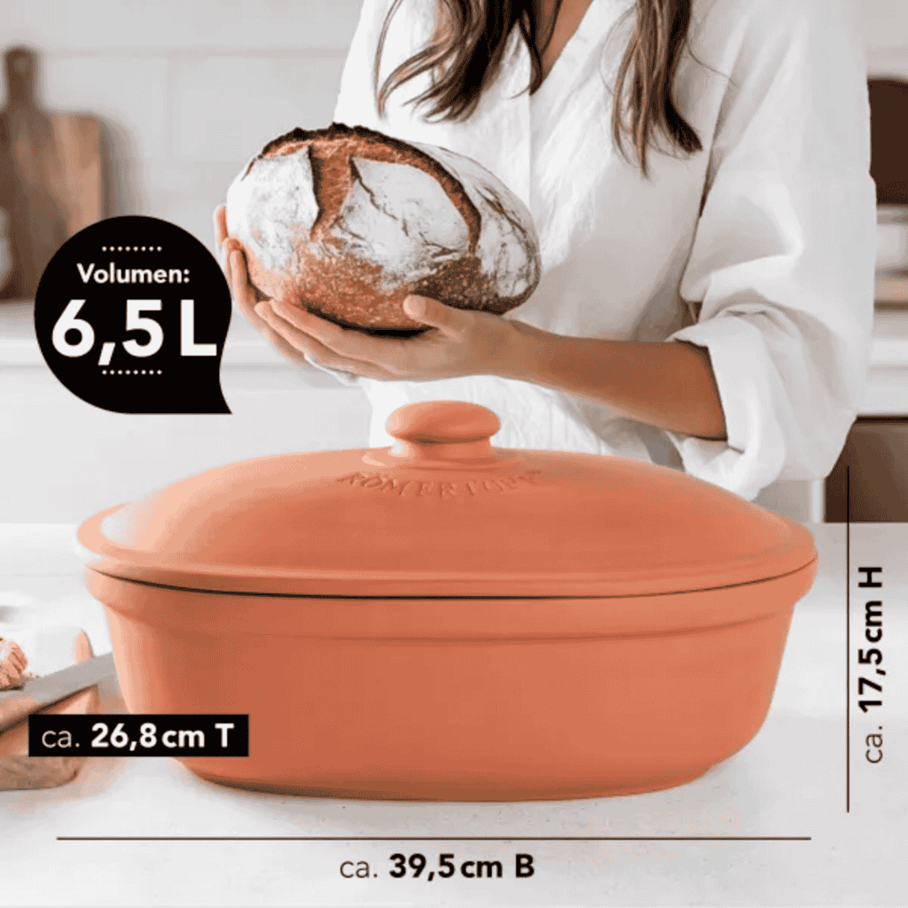 Todas las ollas Römertopf se fabrican en Alemania y Europa con arcilla alemana de alta calidad, que garantiza una cocción suave, uniforme y libre de tóxicos. Además de sus emblemáticas ollas romanas de arcilla, la marca es reconocida por sus paneras y tarros para conservar hortalizas, que mantienen los alimentos frescos por más tiempo, de forma sostenible y sin recurrir a plásticos. Sus diseños, originales, elegantes y prácticos, permiten llevar las piezas directamente del horno a la mesa. Sinónimo de calidad, Römertopf combina magistralmente tradición y modernidad, promoviendo la cocina saludable y sin sustancias perjudiciales.