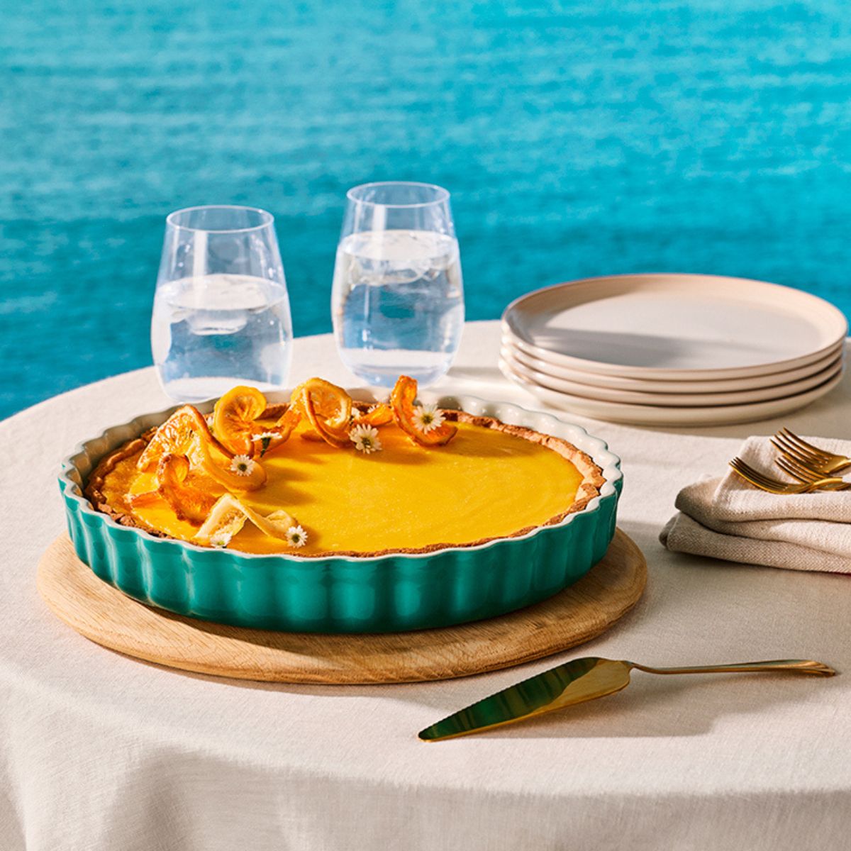 El Molde cerámico para tartas y quiches Le Creuset es una de las insignias de la marca en el área de repostería: bajo, con ondulaciones perfectas y sinuosas y con ese esmaltado interior blanco. Es un molde elegante, apto para todas las ocasiones y una pieza preciosa.