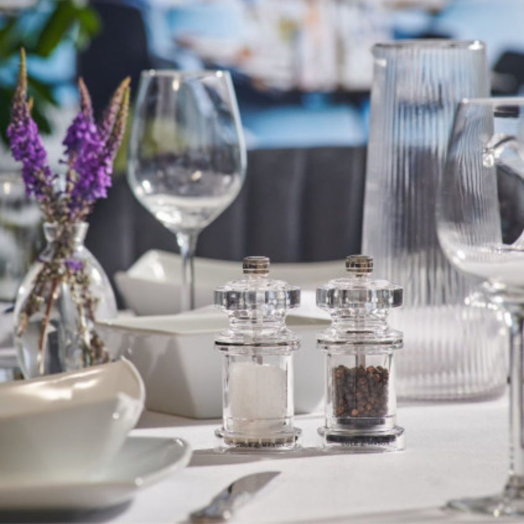 Ideal para moler sal o pimienta con comodidad y precisión, los Molinillos acrílicos 675 Cole&Mason son una joya que no puede faltar en tu cocina. Con un diseño robusto y moderno, son unos molinillos fabricados en metacrilato y acabados con elegantes detalles de acero inoxidable.