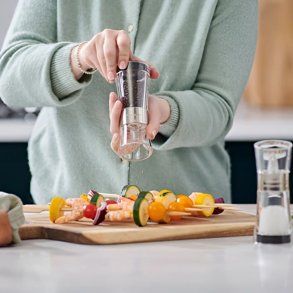 El Set de molinillos de sal y pimienta Flip Inverta de Cole&Mason es la opción ideal para mantener la sal y la pimienta organizadas y a mano en la cocina. Perfectos para los amantes del orden, estos molinillos no solo son prácticos, sino también muy estéticos.