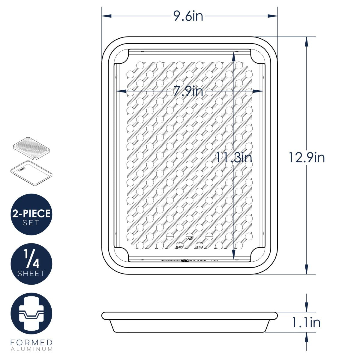 La Bandeja con rejilla multifunción Naturals® Collection Nordic Ware es un set de dos piezas de lo más funcional. Diseñado para hornear, enfriar, asar y también para glasear tus elaboraciones reposteras de la forma más cómoda y práctica, te va a durar toda la vida. La bandeja está fabricada en aluminio natural y, por su excelente conductividad térmica, es ideal tanto para hornear los alimentos, como para enfriarlos. La rejilla de acero con revestimiento antiadherente destaca por su superficie estriada en relieve con perforaciones, y es perfecta tanto para utilizar con la bandeja, como para usarla individualmente.