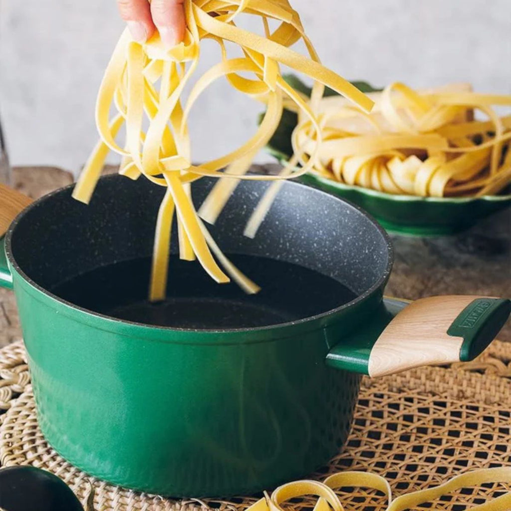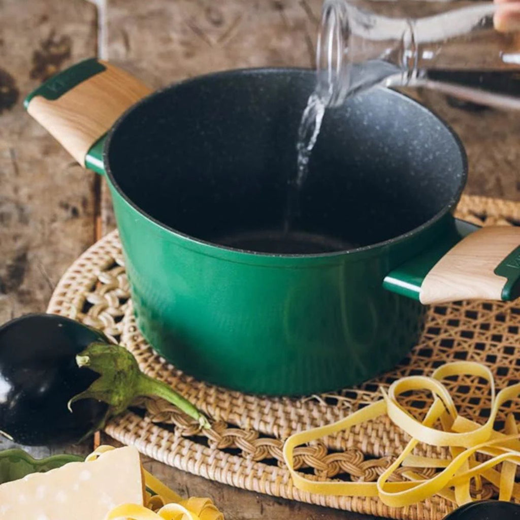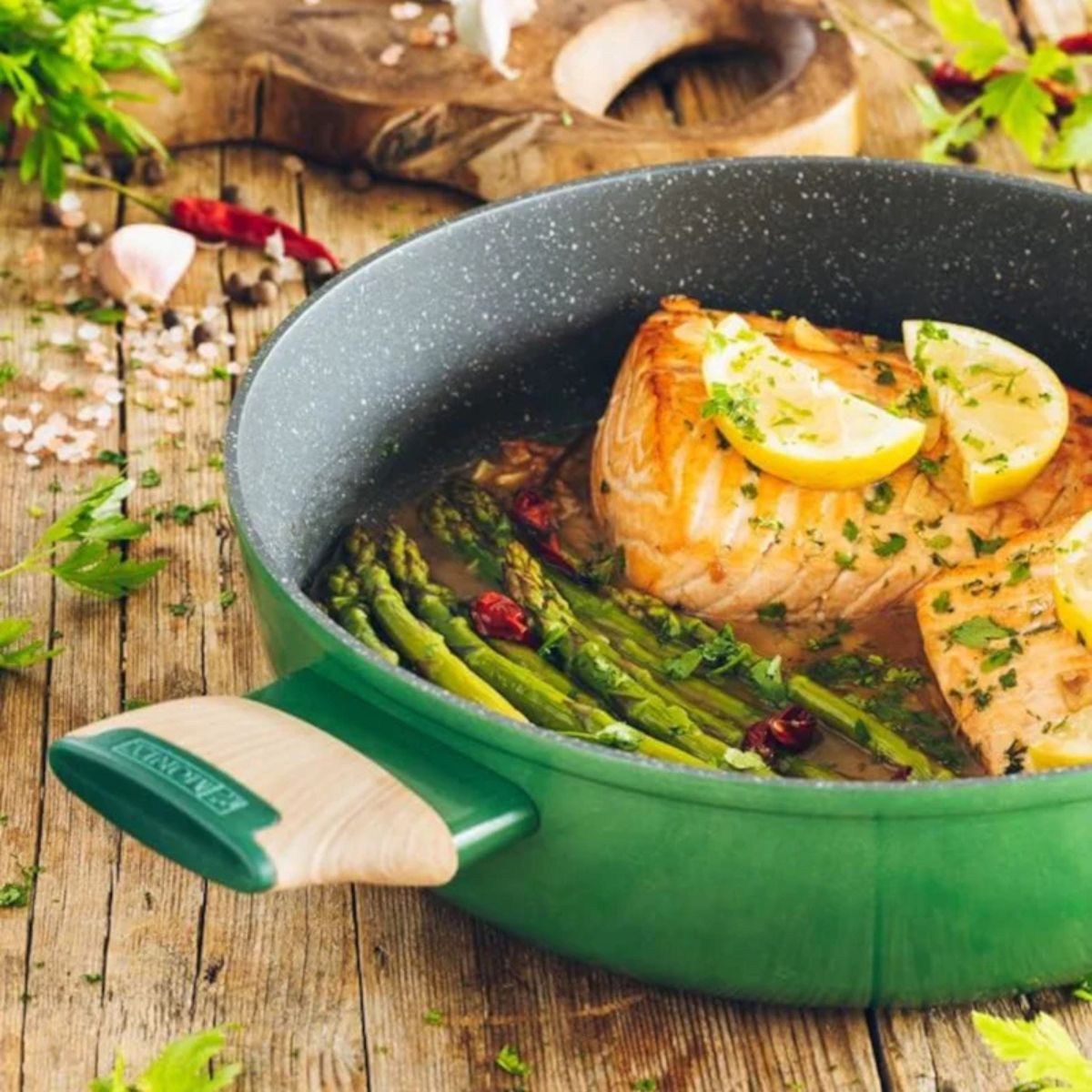 Podrás cocinar de forma muy sencilla, cómoda, rápida y sostenible. Sus asas y mangos de baquelita termoaislantes disponen de recubrimiento softouch con efecto madera, que además de permitirte su manejo de forma segura, trasmite un aire natural, suave y contemporáneo en todas las piezas.