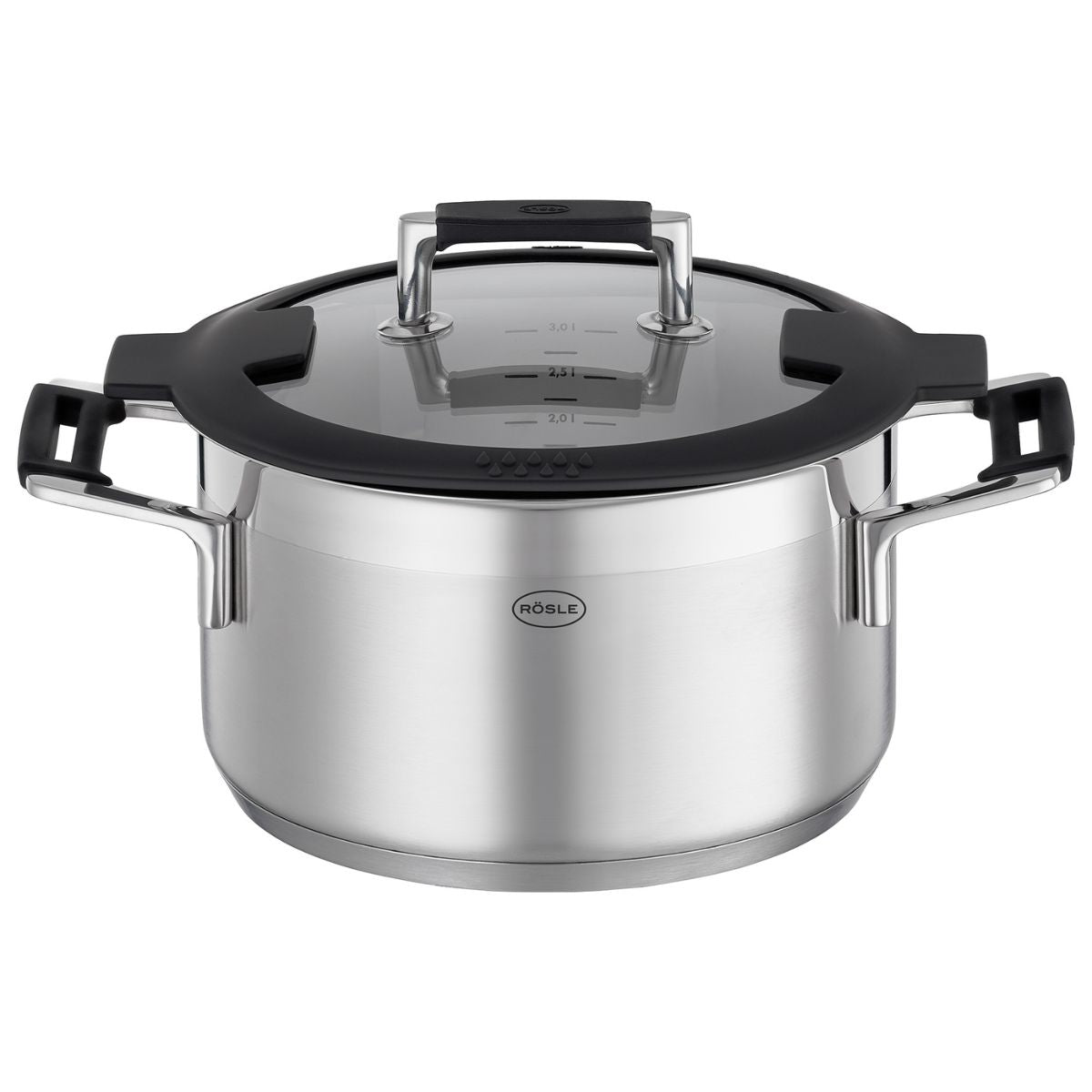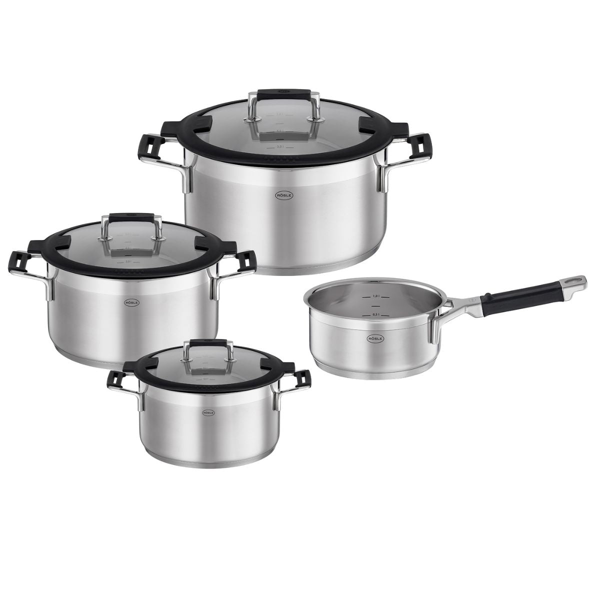 La batería de cocina de 4 piezas Silence Pro Rösle contiene 3 ollas altas con tapa y un cazo, las piezas imprescindibles para equipar tu cocina: