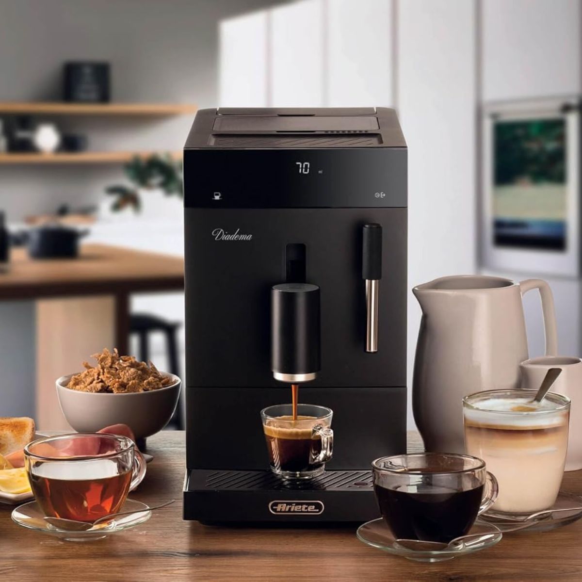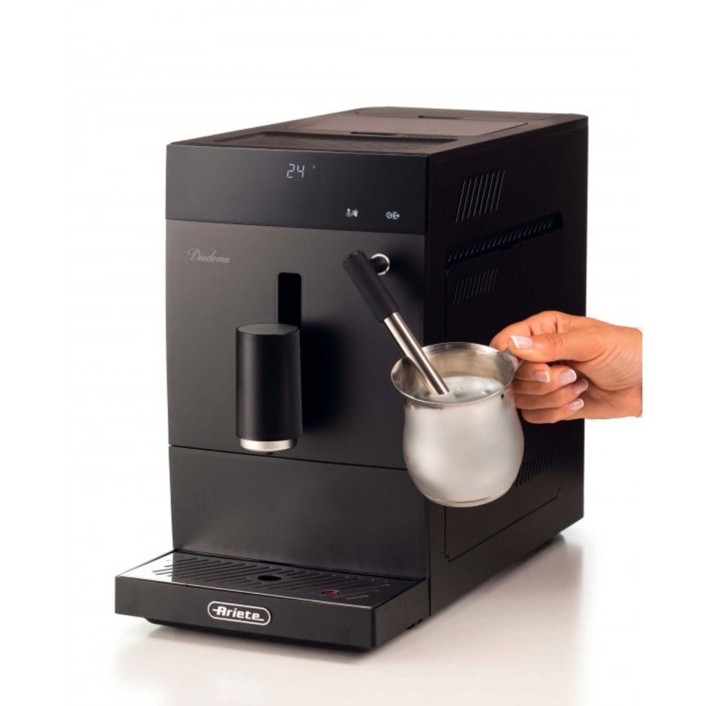 Lleva el café de calidad profesional directamente a tu cocina con la cafetera automática Diadema de Ariete 1452. Con solo un toque, prepara espresso, americano o agua caliente, además de capuchinos cremosos gracias a su dispositivo de leche. Su diseño elegante, funcionalidad avanzada y potencia aseguran que tus pausas café sean momentos de disfrute.