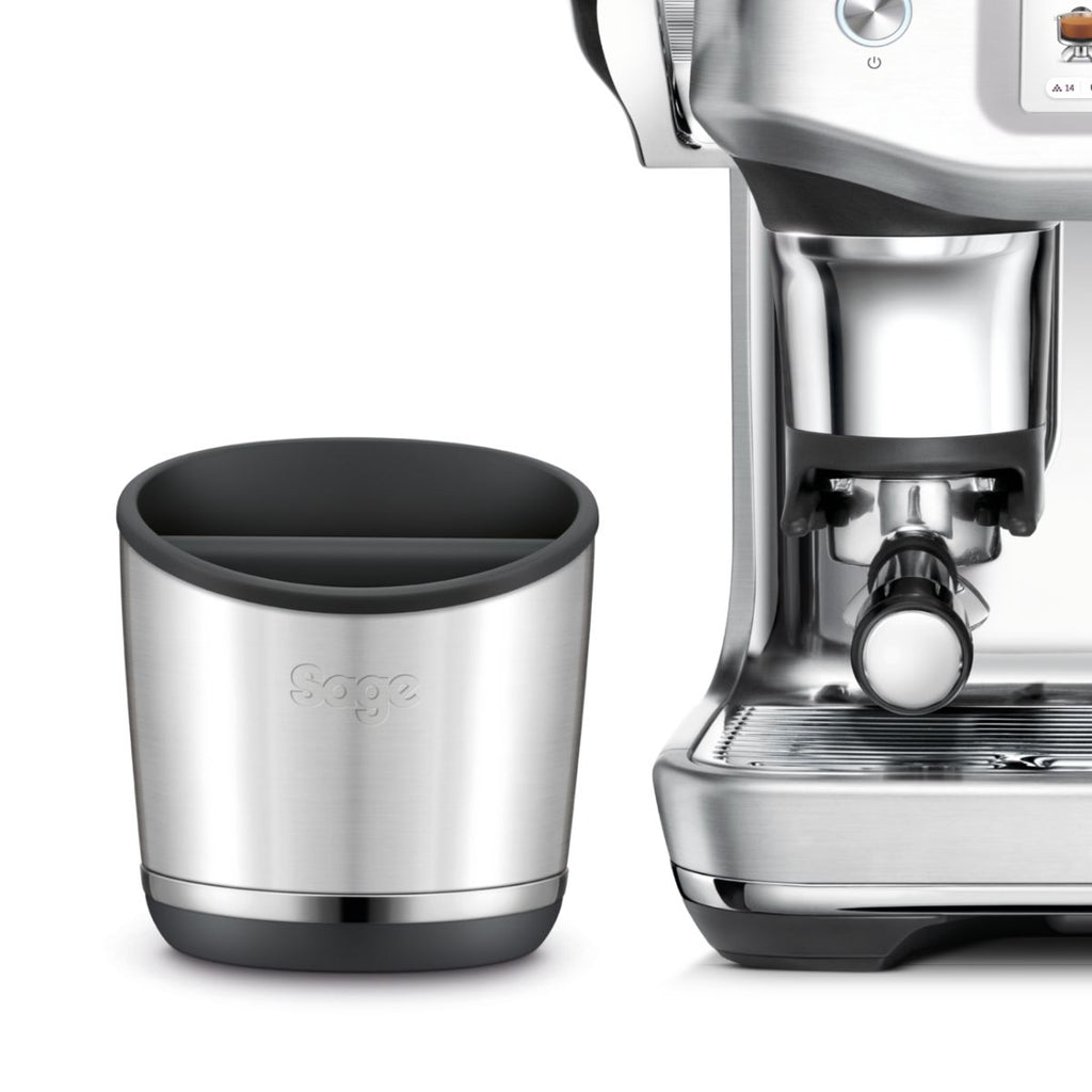 Si te encanta saborear el mejor café, pero eres de los que piensa que los posos son un quebradero de cabeza, es porque todavía no conoces el recipiente para posos de acero inoxidable The Knock Box Sage Breville. Se acabó no saber qué hacer con los posos, no saber dónde dejarlos y tener que pasearlos de un lado para otro.