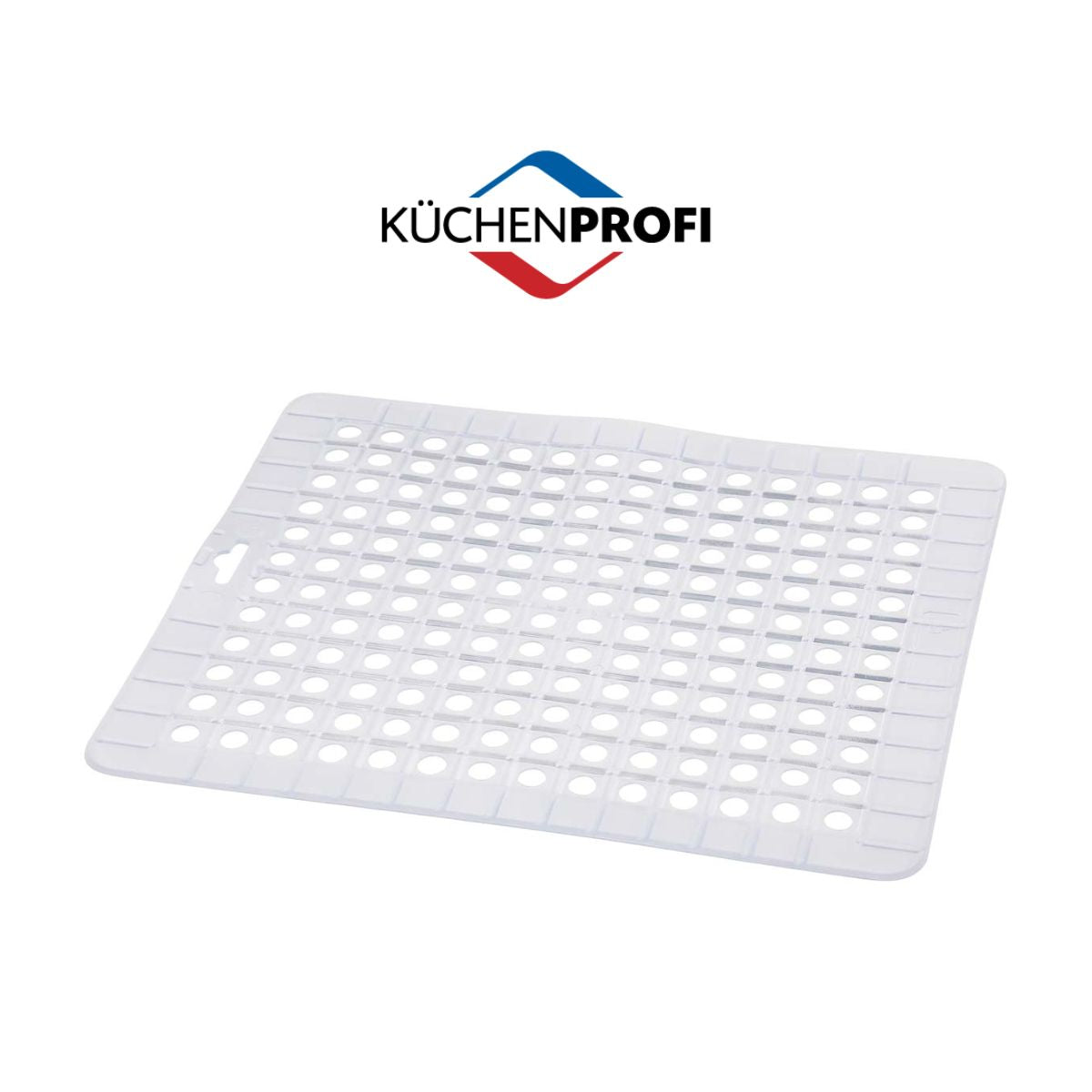 El Protector para el fregadero Küchenprofi es una alfombrilla antideslizante de una sola pieza, con prácticos orificios de drenaje. Además de proteger el fregadero de rayaduras y golpes, esta alfombrilla es perfecta para escurrir el agua al lavar los vasos, boles y piezas delicadas de tu vajilla, mientras las protege de arañazos y desconchados