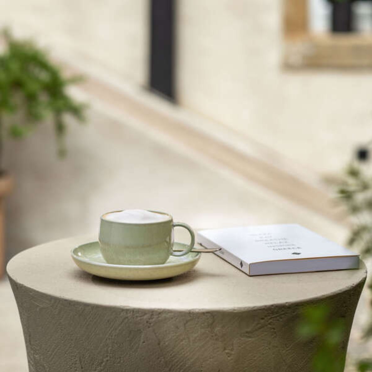 Todas las tazas presentan un acabado ligeramente distinto gracias a su esmaltado con técnica de vidriado reactivo, lo que hace que parezcan hechas a mano; un detalle que les confiere mucho carácter y hace que cada pieza sea única y diferente, pero con la misma calidad. El acabado transmite una sensación natural, ideal para combinar con otras piezas de tu vajilla o de la colección Perlemor y crear una mesa cálida y muy acogedora.