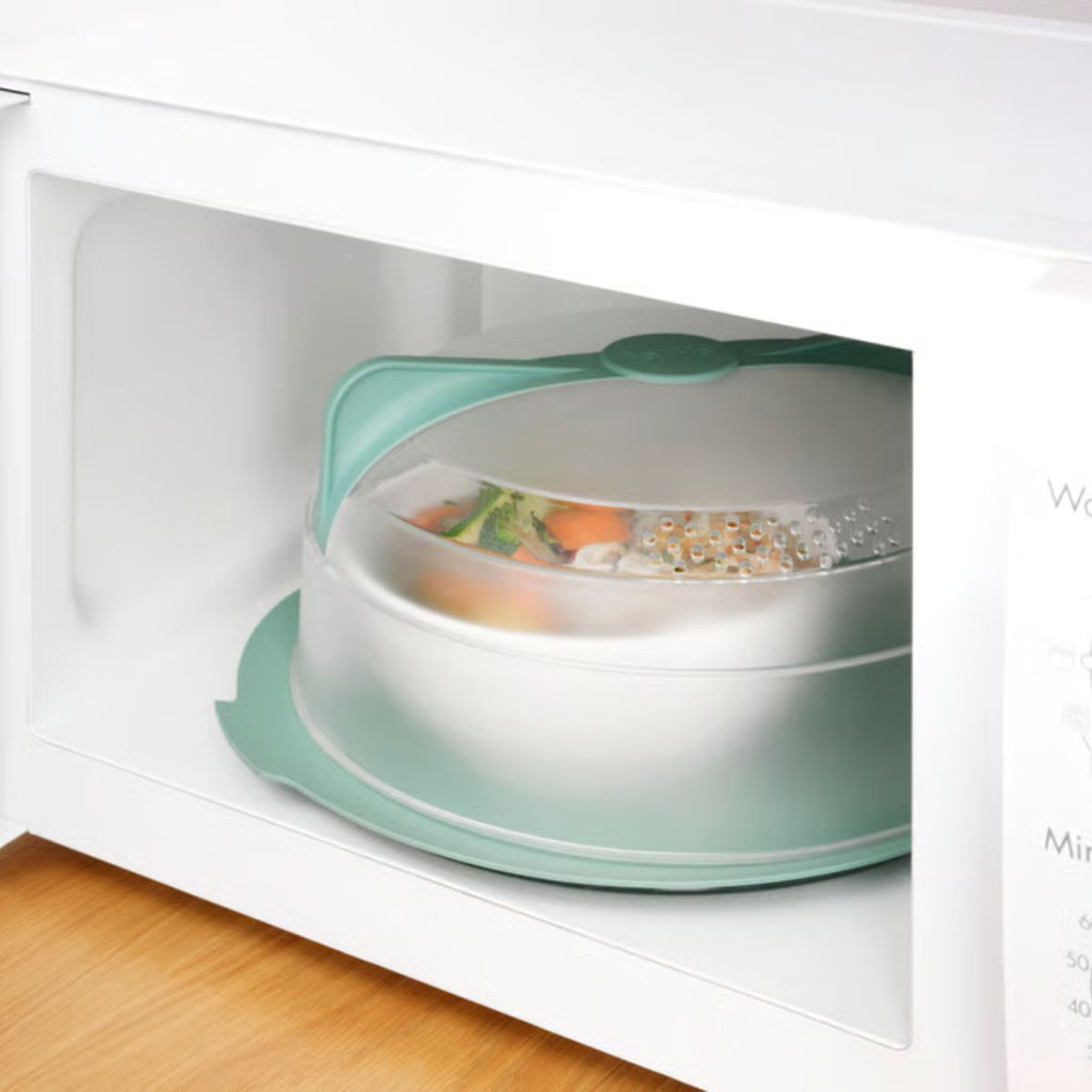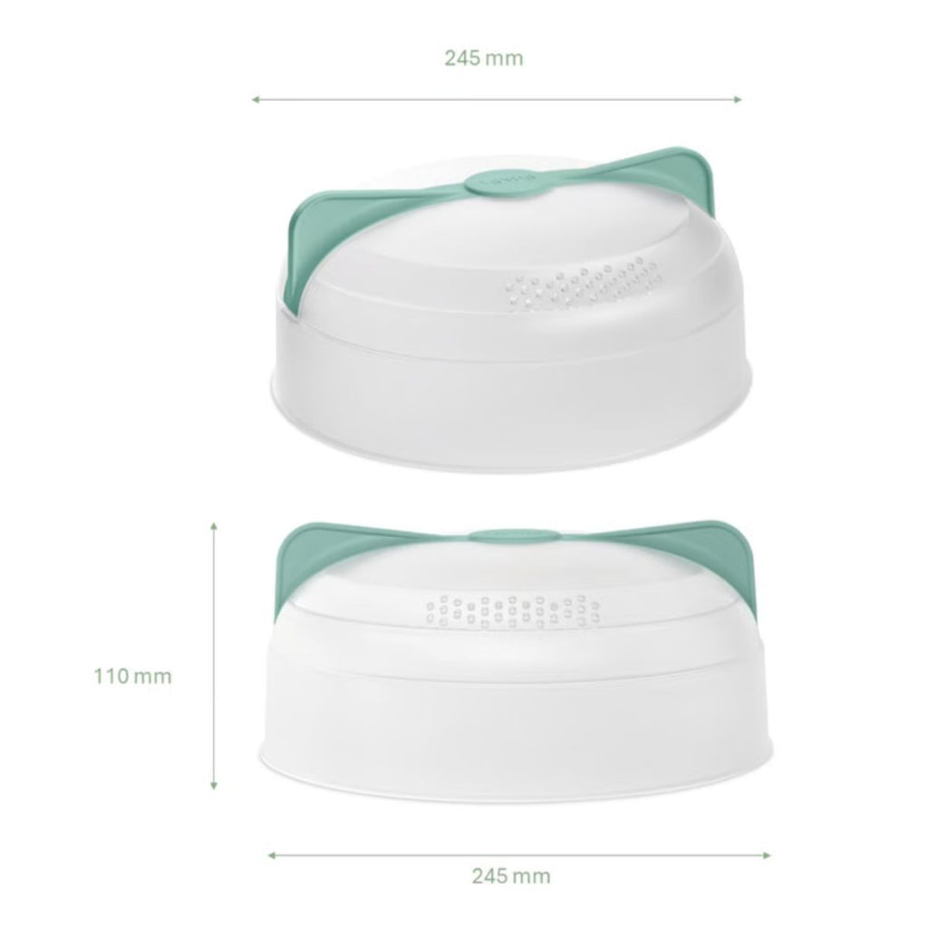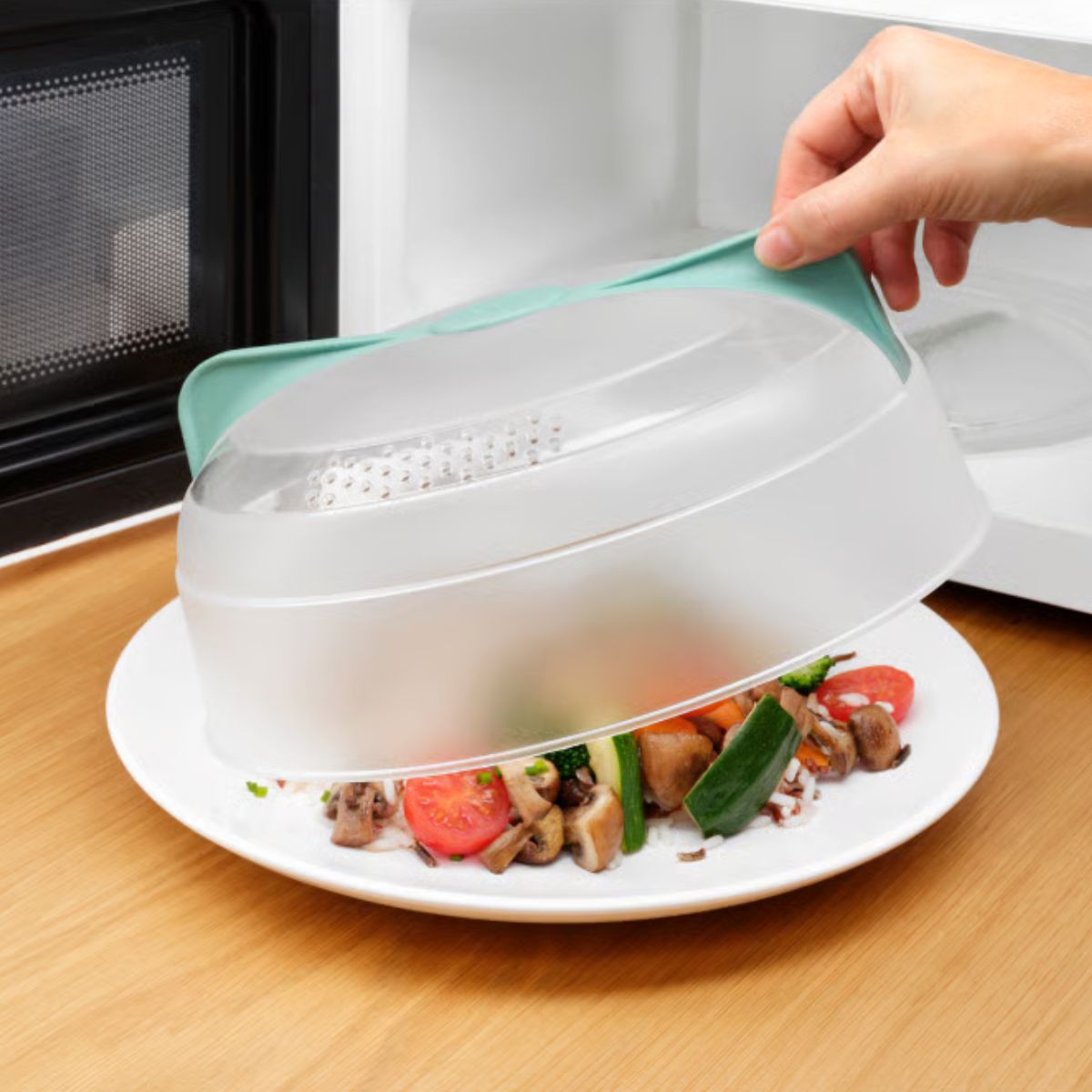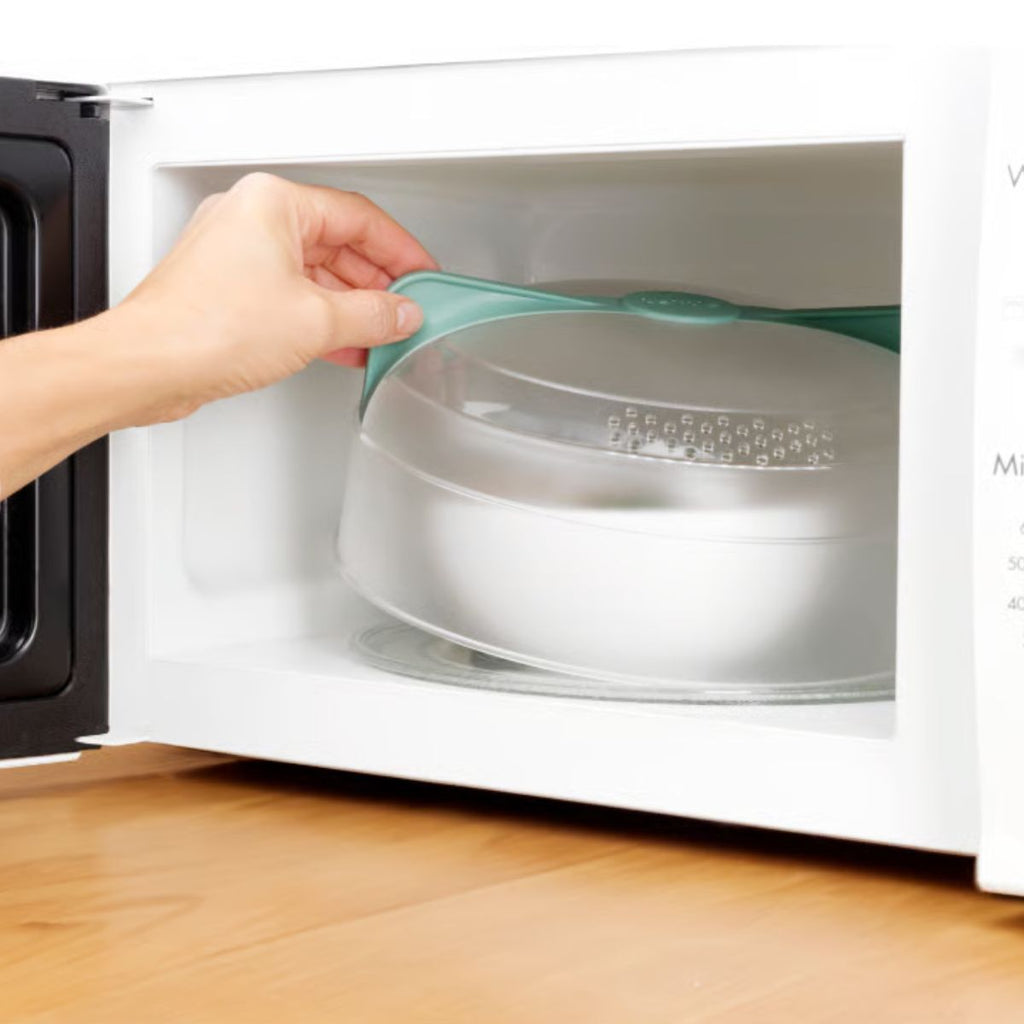 La tapa para microondas cuenta con asa desmontable, para que puedas limpiarla fácilmente y por completo sin complicaciones, incluso en el lavavajillas. Dispone de orificios que permiten la salida controlada del vapor al calentar, lo que permite mantener el microondas limpio y tus preparaciones jugosas. Esta tapa para calentar en el microondas es, sin duda, una ayudante de primera.
