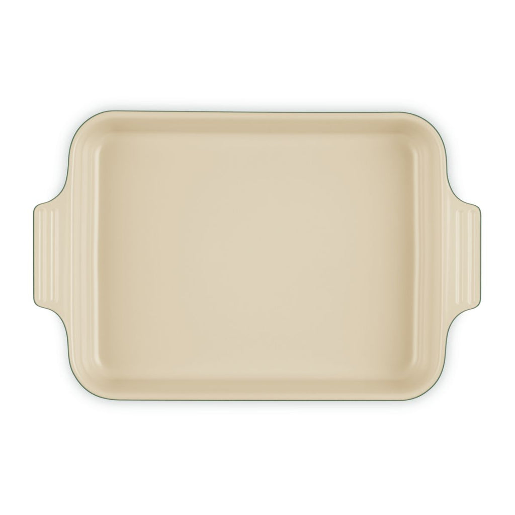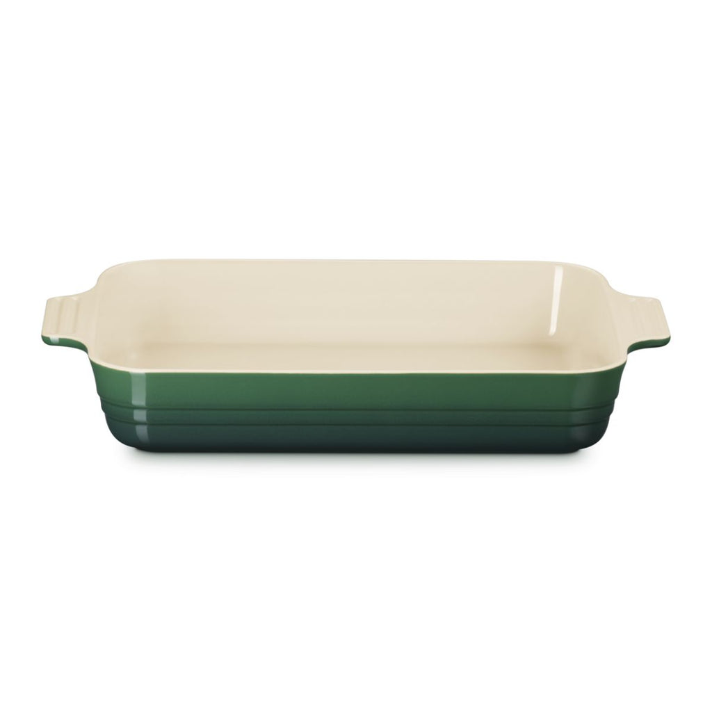 Esta es una de las bandejas de Le Creuset más tradiciones e icónicas. Sus amplias y preciosas asas, y su interior esmaltado blanco con un precioso esmaltado exterior en color verde, dan como resultado una combinación bonita y tradicional.