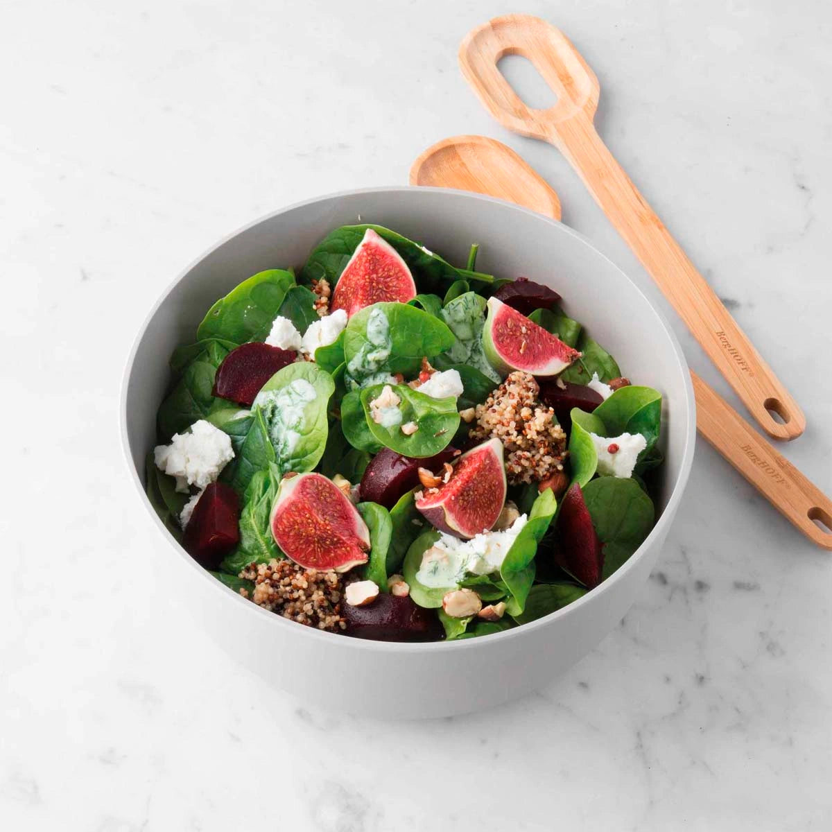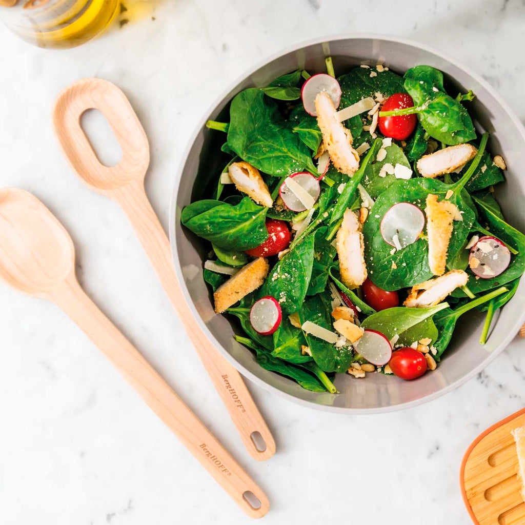 Sin ningún tipo de duda, este bol para ensalada con cubiertos de bambú Berghoff es perfecto para compartir tus creaciones saludables, llenas de color y originalidad en la mesa. ¿Con qué ensalada vas a estrenar este bol: con una de atún, una con pollo o una ensalada con frutas?