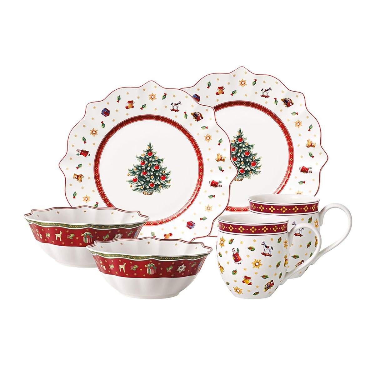 De color rojo o blanco, el Set de 6 piezas de porcelana Toy's Delight Villeroy & Boch es un conjunto tan precioso que querrás tenerlo en tu mesa. Este juego de 6 piezas, que tanto podrás usar como vajilla de 2 servicios, o para combinar con tus platos, vestirá tu mesa con su exquisita calidad y sus encantadores diseños inspirados en juguetes clásicos. Si adoras la Navidad, este set de 6 piezas no puede faltar en tu mesa. Además, se presenta en una elegante caja, lo que lo convierte en un regalo ideal.