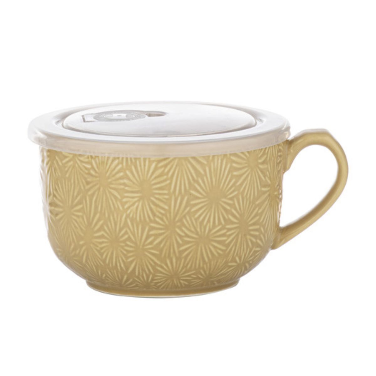 Con un bonito diseño, la taza cuenta con una amplia asa para que puedas sujetarla y manejarla con comodidad y seguridad. Es apta para el microondas, por lo que podrás calentar directamente los alimentos sin tener que destaparla, ya que la tapa incorpora una válvula para la salida del vapor. Una taza que combina practicidad y estética, ¡todo un acierto!