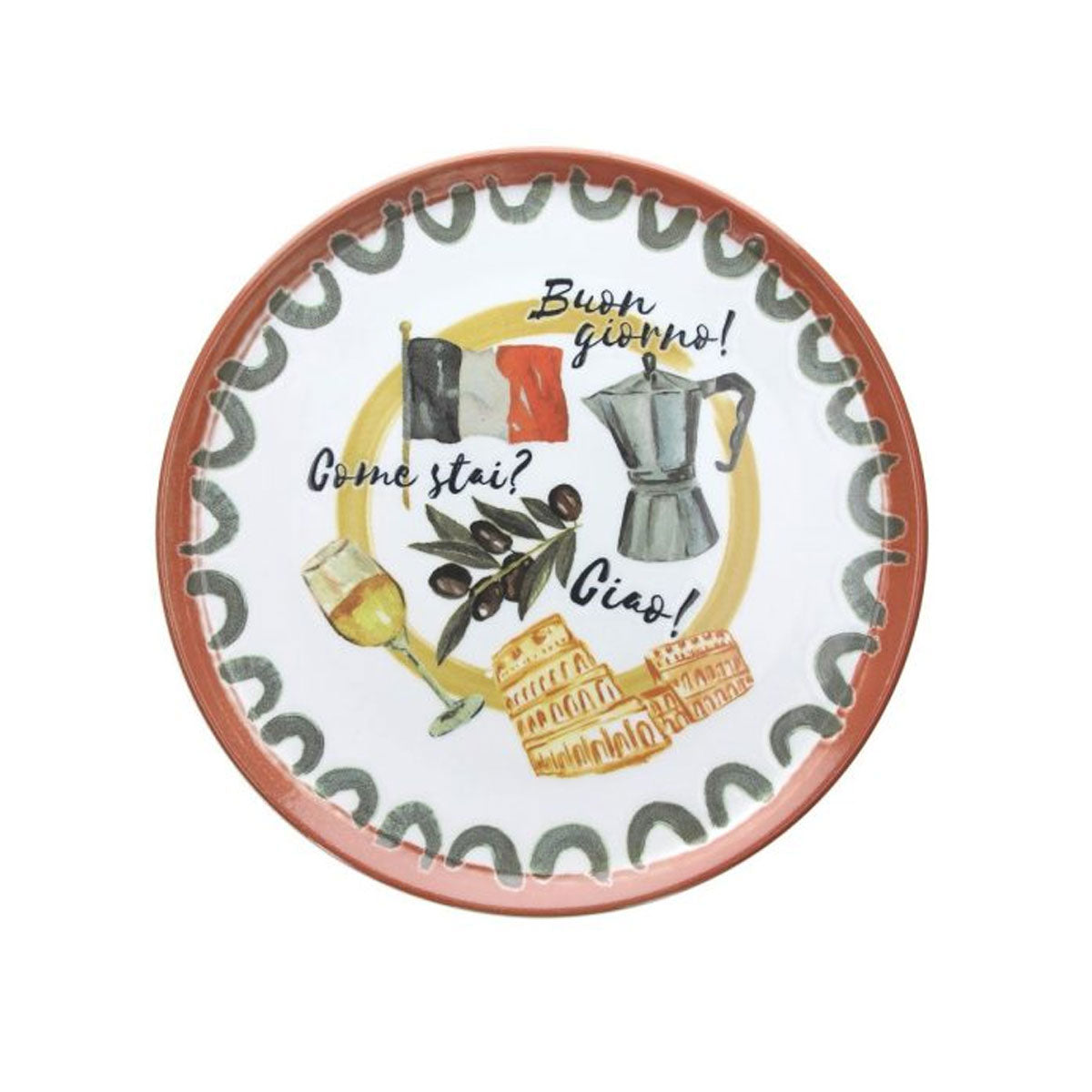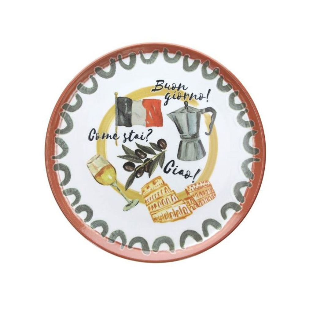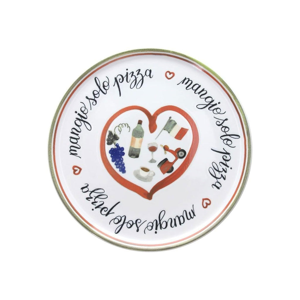 Estos 4 platos de porcelana de primera calidad son una auténtica declaración de amor a la pizza y a Italia. Cada plato presenta un diseño distinto, alegre, lleno de color y de amor a la pizza, con referencias al "Belpaese", como la cafetera italiana, la Vespa, el aceite de oliva o el tomate.