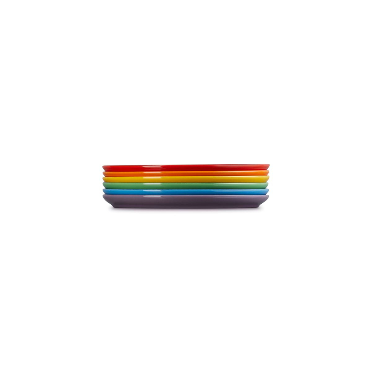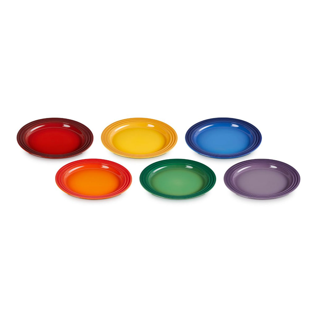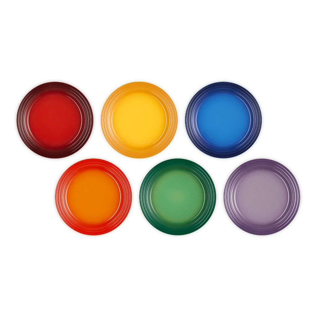Con el Set de 6 platos Arcoiris Le Creuset no habrá mesa más alegre que la tuya. Este conjunto incluye 6 piezas de 22 cm de diámetro, fabricados en cerámica de gres y esmaltadas en los colores más vivos de la marca francesa.