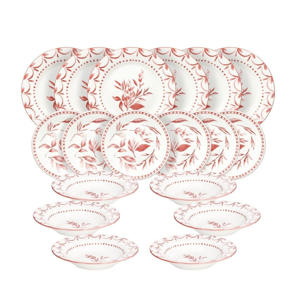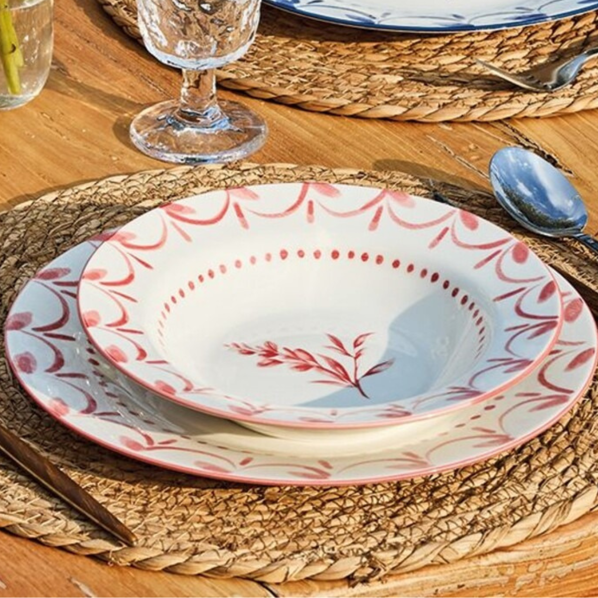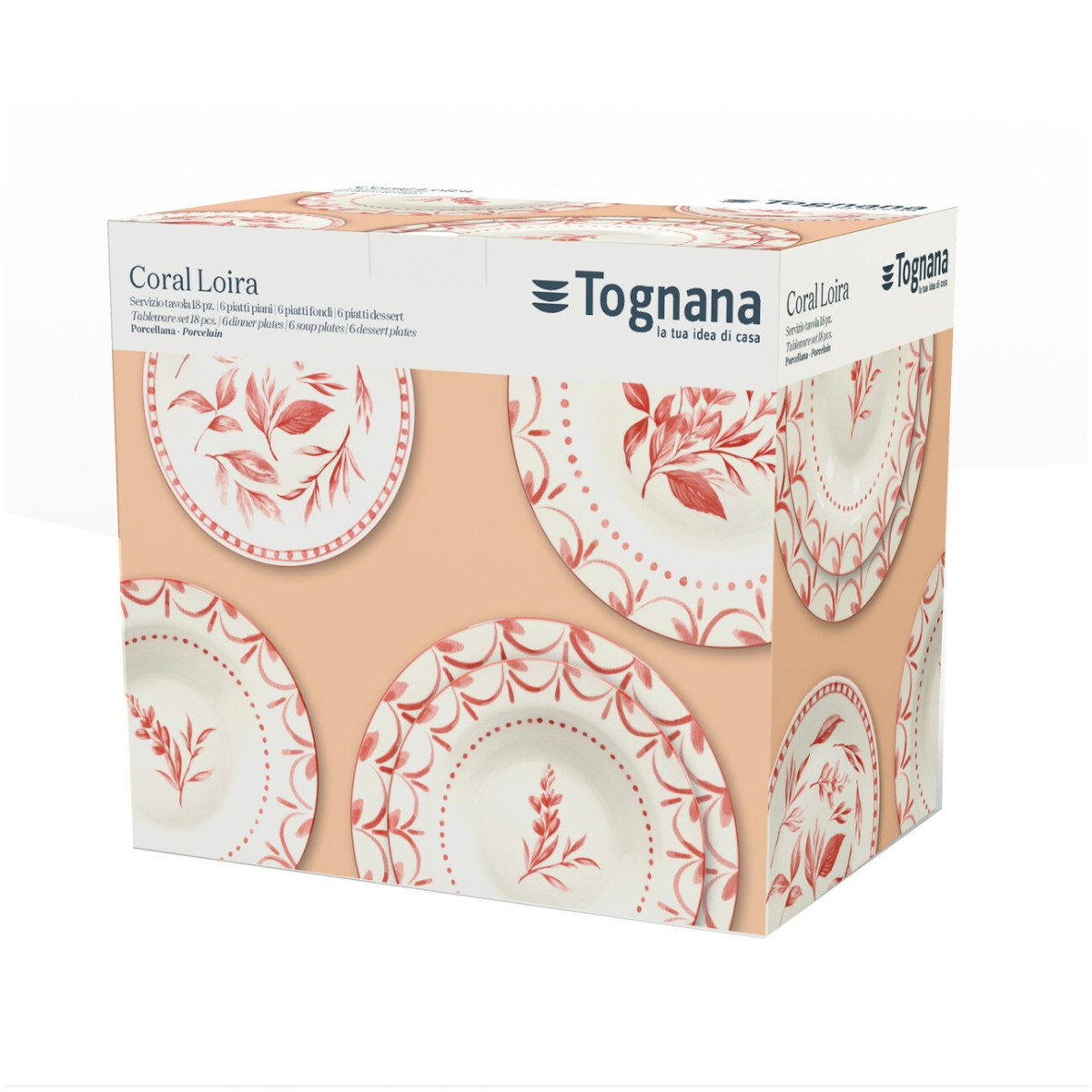 La vajilla de porcelana Coral Tognana es una vajilla elegante, sofisticada, delicada y con un toque rústico. Destaca por sus acabados delicados con un diseño floral en color rojo coral. De aquí el nombre de la vajilla.